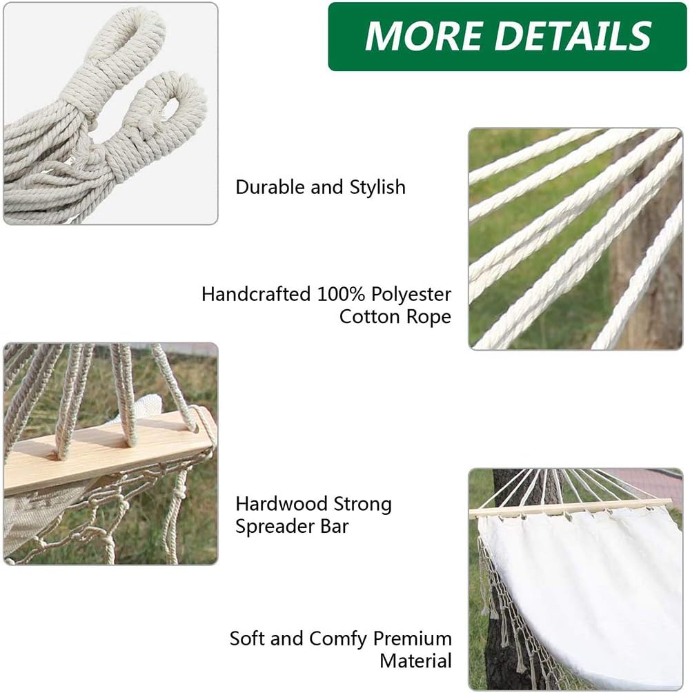 Hammock Swing Chair Nordic style hand-woven Fringe Single Double Hammock Net Out/Indoor Hanging Hammock SwingsFeatures:-Fringe design gives the hammock a bohemian style.-The hammock can be arranged at home or outdoors for easy rest.-The canvas of the hammock is durable and comfortable.-Solid color design beautiful and fashionable.-The size of the hammock is 200cm*100cm there is enough space for people to rest.Specification:-Size: 200 cm*100 cm-Color: White-Weight: 1600g-Fabric material: CanvasPackage Included:1* Swing hammockPlease contact us promptly if you have questions about the product and we will get back to you within 24 hours.