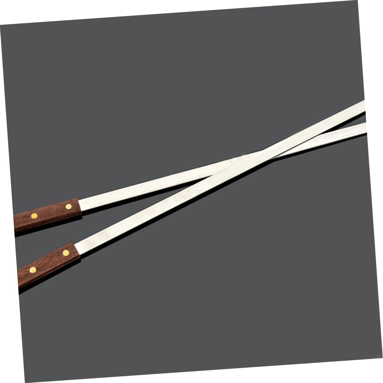 Package Include 5 x BBQ Skewers Characteristics -Color: Light Brown flat meat skewers. -Material: Stainless Steel and Wood stainless steel barbecue bar. -Size: Approx. 54 cm / 21.22 inch (total length); 10 cm / 3.93 inch (length of handle) stainless steel barbecue stick. - Suitable for family dinner, parties, outdoor play and other occasions barbecue use reusable BBQ skewer. - Unique flat shape design prevent your food from or rolling and it makes getting an even cook easier BBQ skewers. - Smooth edges that are safe for you to hold, very useful and practical in daily life barbecue stick. - Made from stainless steel and wood material, rustless, durable and strong for use barbecue skewer. - Wooden handle design prevents people from getting burned easily when grilling.Goods Informationreusable BBQ skewer No worry about burned stick destroy the meat's taste anymore.barbecue skewer Special shape and wide and flat design makes your cooking .BBQ skewers Made of stainless steel and wood material, these barbecue skewers are rustless, durable and strong for use, suitable for BBQ lovers and home BBQ party holders