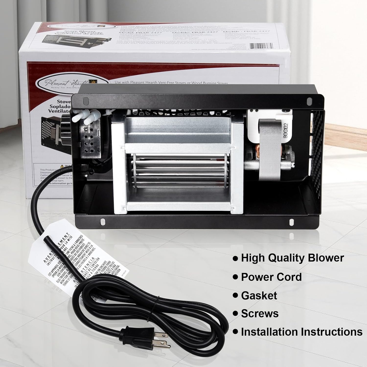 ►PBAR-2427 wood stove blower kitsDimesions: 9.75‘’L x 3.62''W x 5.25''HPower Cord Length: 71"Operating Voltage is 110 to 120 VAC at 60 Cycle, 3,200 RPMPackage: 1 blower fan x1 power cord x 1 gasket x 4 screws x installation instructions►Designed and certified to only operate with Pleasant Hearth vent free stoves or wood burning stoves.NOTE: Only to work with Pleasant Hearth brand fireplaces and stoves and should not be installed in units made by other manufacturers.