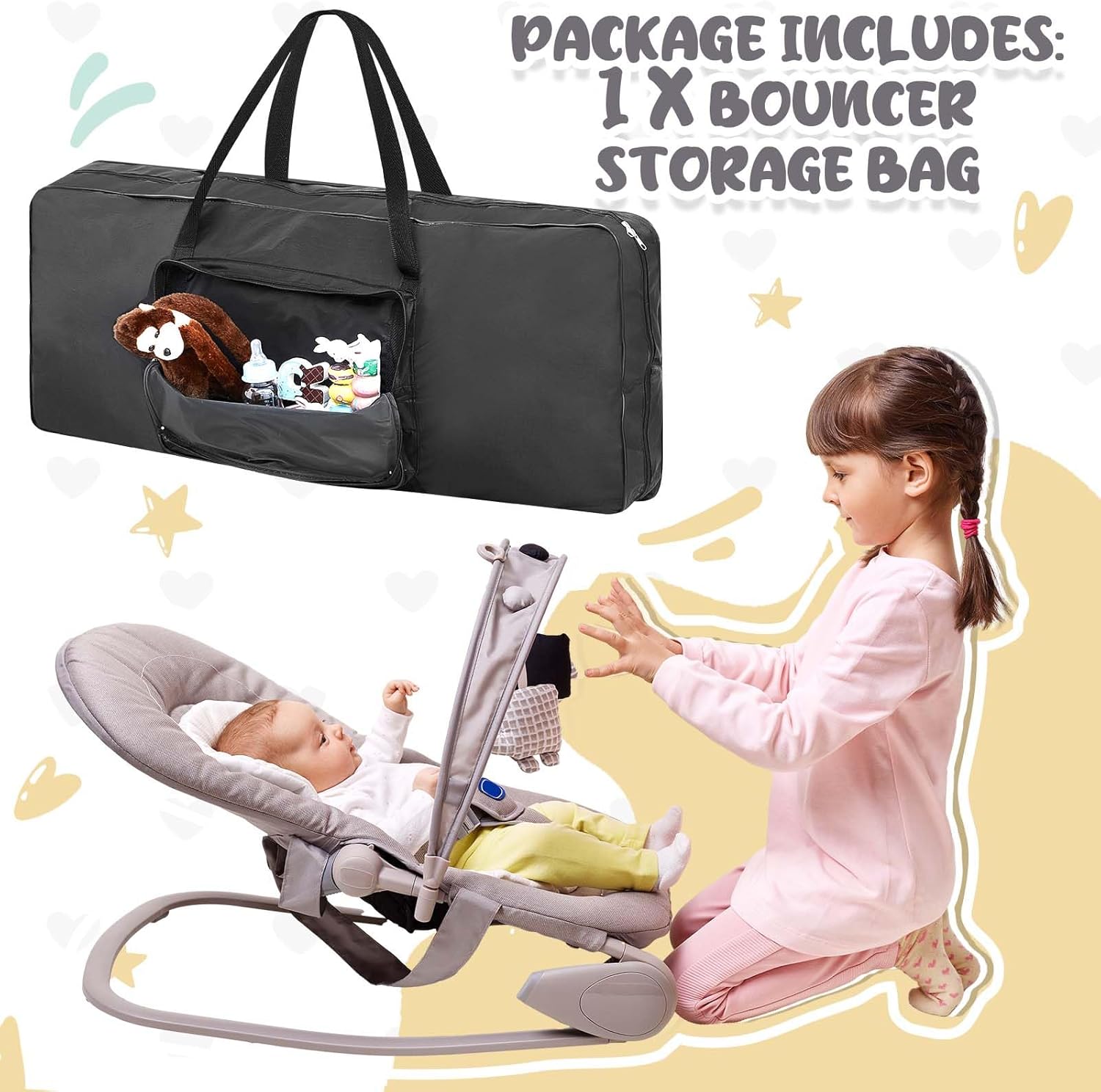 Features: Optimal protection: With this bouncer seat transport bag, your bouncer is given an ideal protection. Its reliability provides safety during transportation, shielding against bumps and scratches. Invest in this and have peace of mind while traveling with your bouncer! Portability and versatility: Positively, you can carry this bouncer carrier either on your shoulder or by hand, as per your comfort. It's portable and foldable, making transportation a breeze, whether you're going for a holiday or a short outing. Specifications: Material: oxford fabric Color: black Size: about 35.8 x 15.4 x 4.5 inches Package includes: 1 x Bouncer storage bag Notes: Manual measurement, please allow slight errors on size. The color may exist a slight difference due to different screen displays.