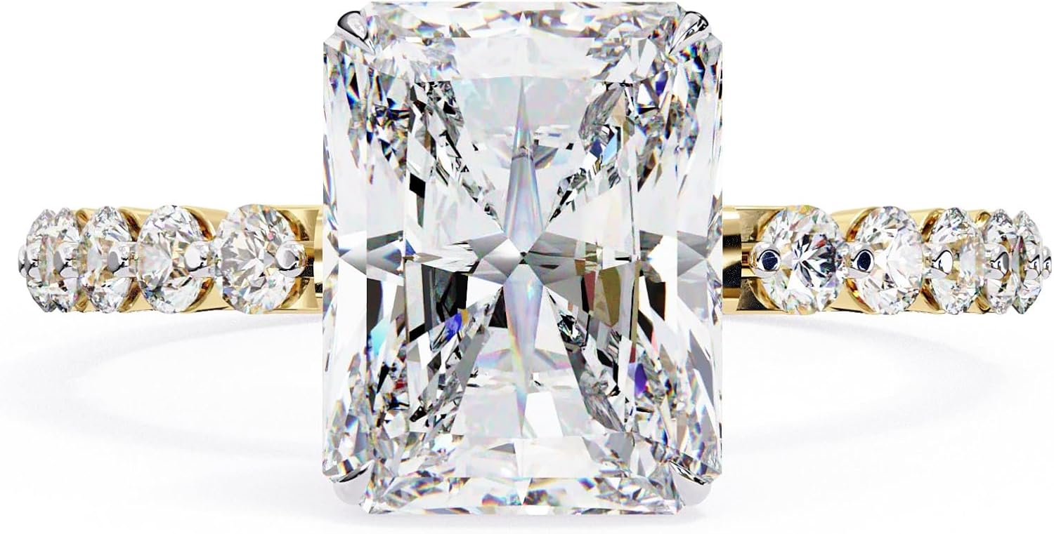 IGI Certified Lab-Grown Diamond Large Emerald Cut with Round Pave Band Engagement Ring for Women in 10K, 14K and 18K, White, Yellow and Rose Gold, 2 to 10 Carat TW (E-F Color, VVS-VS Clarity)