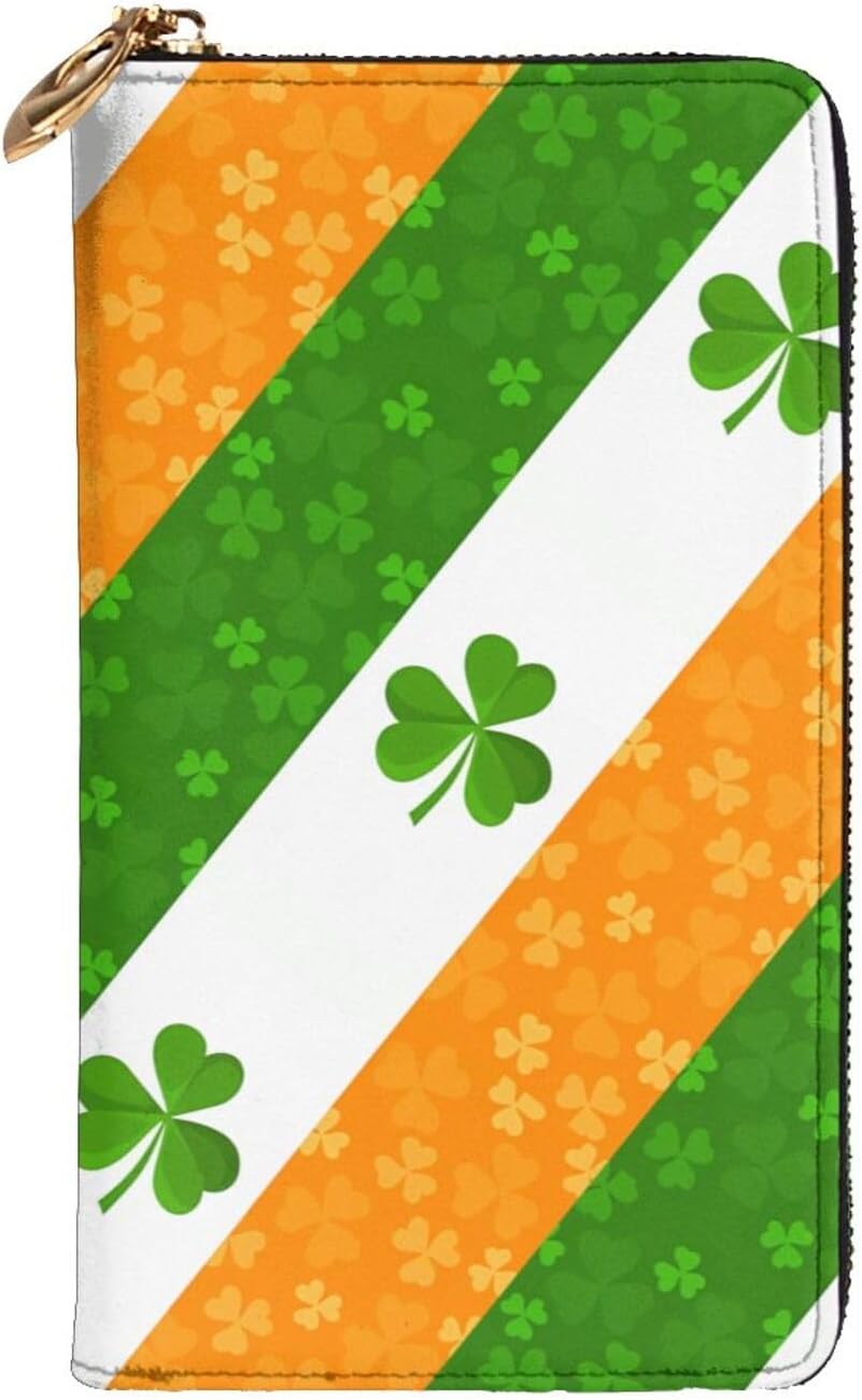 irish flag This women's double-sided printed wallet is stylish, practical, and durable, helping you easily upgrade your daily life and meeting all your storage needs. The unique double-sided printed design showcases your personality and fashion sense, making it not just a wallet, but also a versatile fashion accessory that perfectly complements your everyday outfits. The scientifically designed internal structure maximizes storage space while maintaining a slim profile. With 12 credit card slots, 3 full-length cash pockets, 1 built-in zippered coin pocket, 1 hidden compartment, 1 document slot, 1 passbook slot, and 1 checkbook compartment, you can easily store all your daily essentials: credit cards, cash, coins, receipts, checkbook, ID, and even your mobile phone, keeping everything organized and within easy reach. Suitable for daily commutes, shopping, travel, work, and various other occasions.