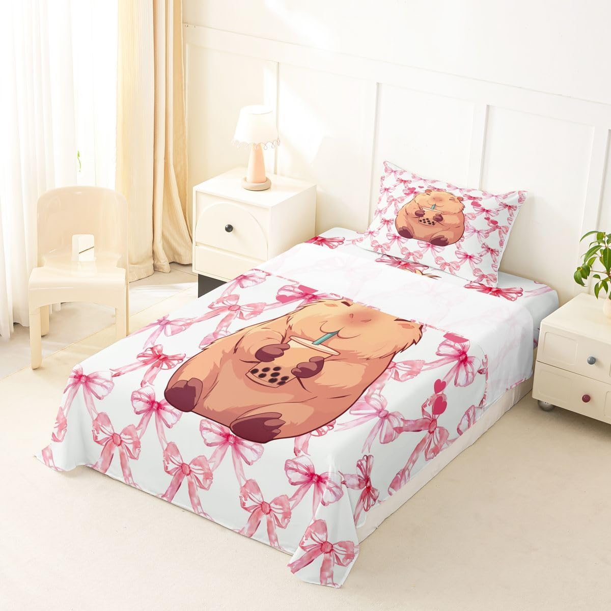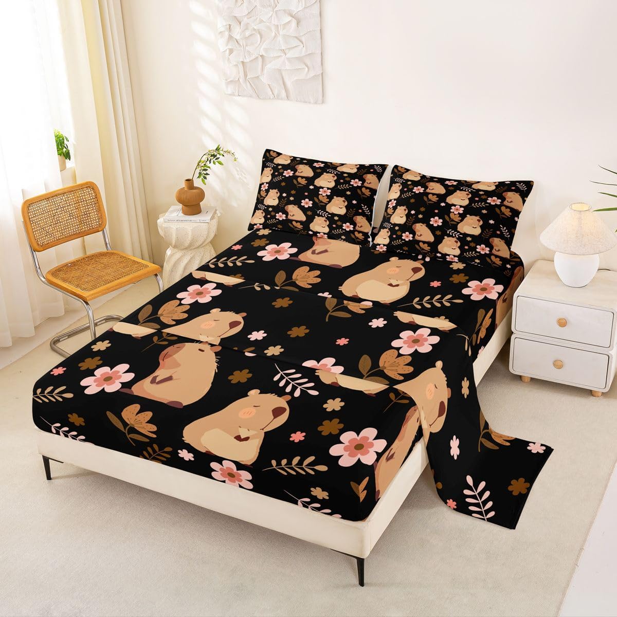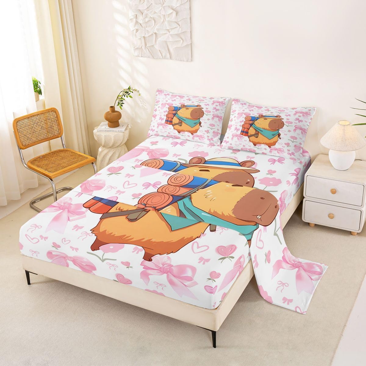 Our bed sheet is made of polyester fabric, lightweight and soft; stylish design is very suitable as room decoration for boys and girls; keep warm in winter and cool in summer; create a comfortable sleeping environment to make you fall asleep all night Range of size 1 twin fitted sheet 39 inch x 75 inch x 16 inch and 1 twin flat sheet 66 inch x 96 inch and 1 standard pillowcase 20 inch x 30 inch 1 full fitted sheet 54 inch x 75 inch x 16 inch and 1 full flat sheet 81 inch x 96 inch and 2 standard pillowcase 20 inch x 30 inch 1 queen fitted sheet 60 inch x 80 inch x 16 inch and 1 queen flat sheet 90 inch x 102 inch and 2 standard pillowcase 20 inch x 30 inch 1 king fitted sheet 78 inch x 80 inch x 16 inch and 1 king flat sheet 90 inch x 106 inch and 2 standard pillowcase 20 inch x 36 inch