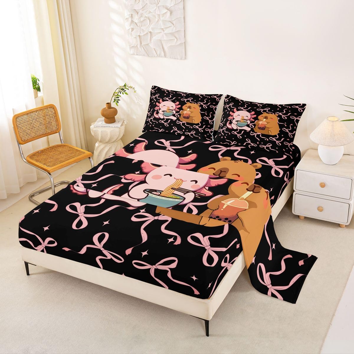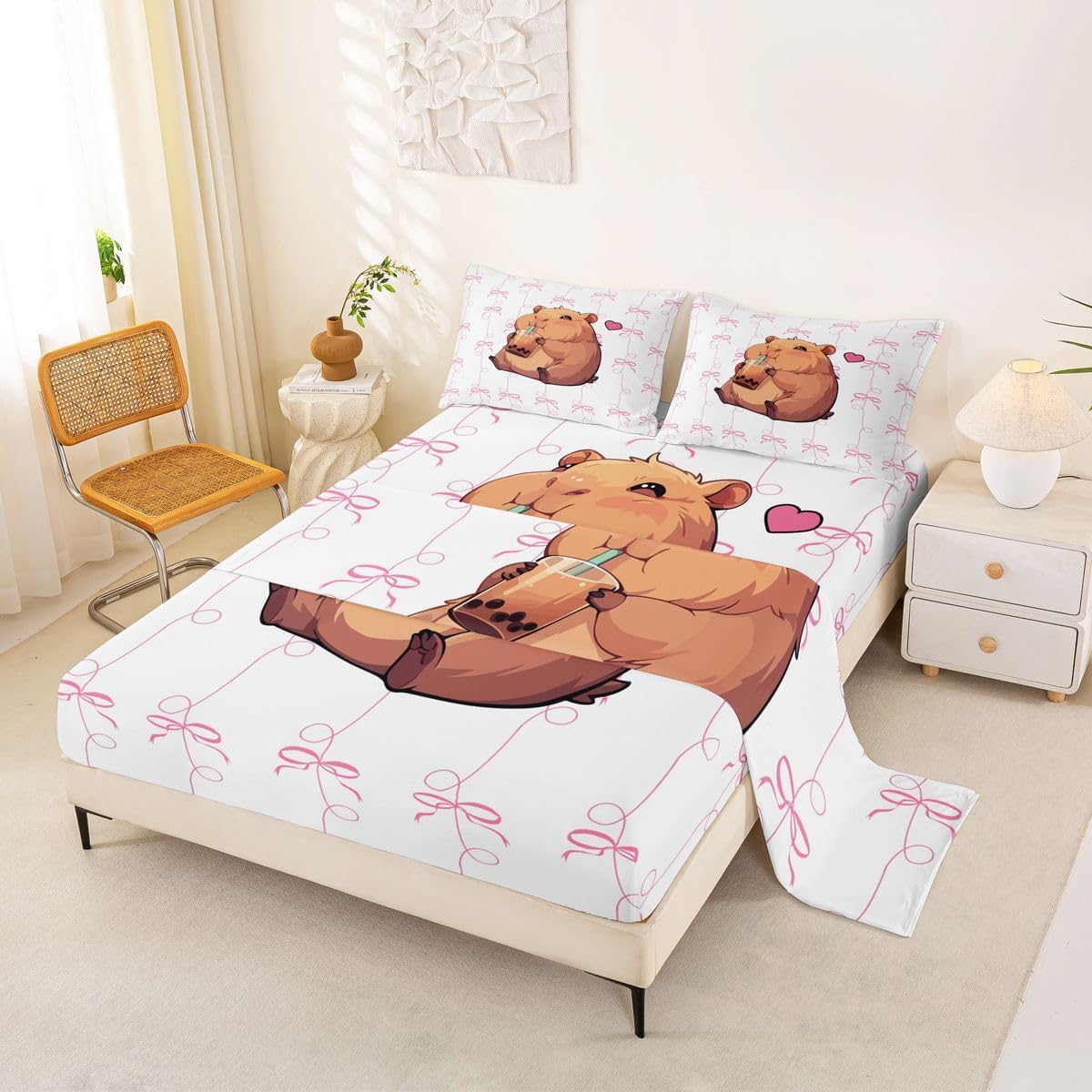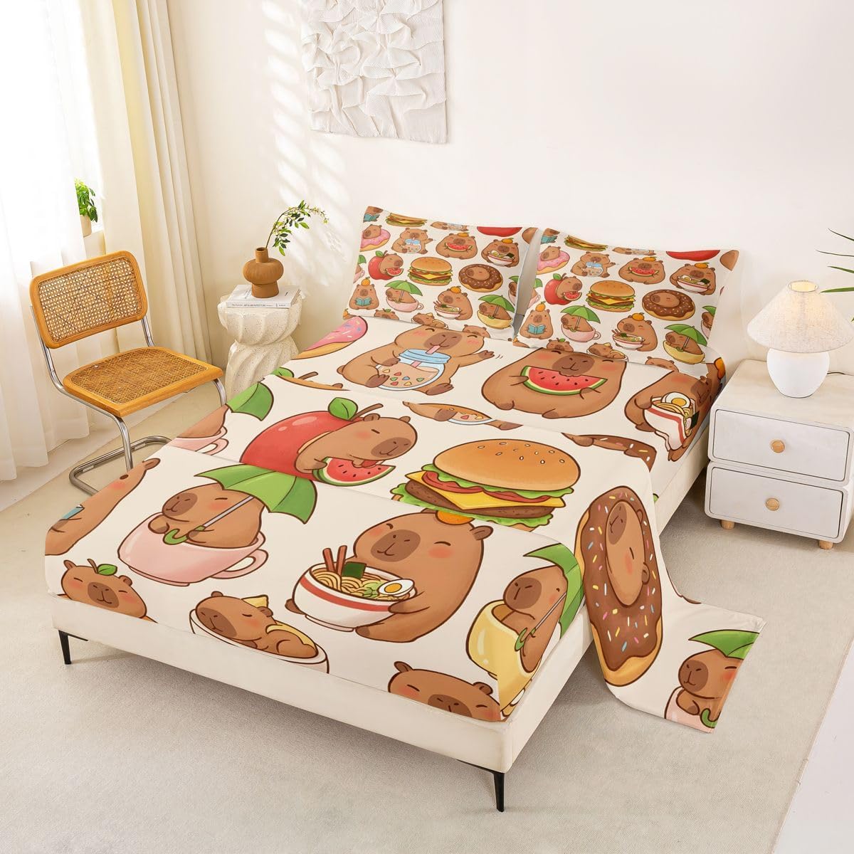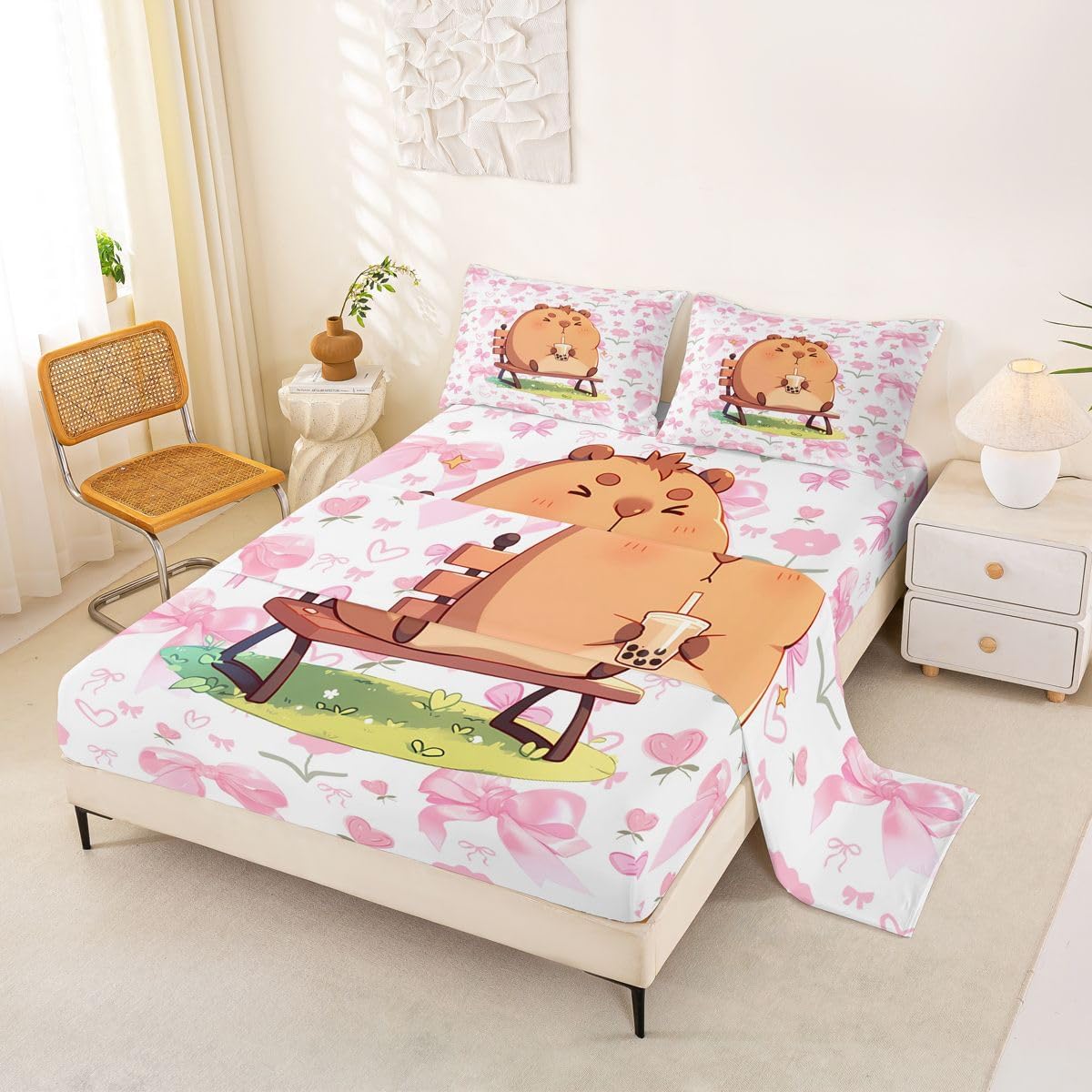 Our bed sheet is made of polyester fabric, lightweight and soft; stylish design is very suitable as room decoration for boys and girls; keep warm in winter and cool in summer; create a comfortable sleeping environment to make you fall asleep all night Range of size 1 twin fitted sheet 39 inch x 75 inch x 16 inch and 1 twin flat sheet 66 inch x 96 inch and 1 standard pillowcase 20 inch x 30 inch 1 full fitted sheet 54 inch x 75 inch x 16 inch and 1 full flat sheet 81 inch x 96 inch and 2 standard pillowcase 20 inch x 30 inch 1 queen fitted sheet 60 inch x 80 inch x 16 inch and 1 queen flat sheet 90 inch x 102 inch and 2 standard pillowcase 20 inch x 30 inch 1 king fitted sheet 78 inch x 80 inch x 16 inch and 1 king flat sheet 90 inch x 106 inch and 2 standard pillowcase 20 inch x 36 inch