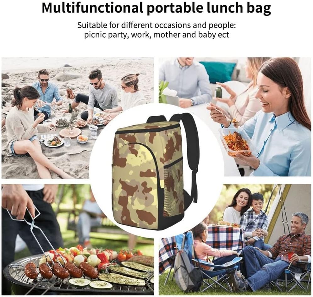Features : Large capacity: 15 x 10.2 x 7.5 in/38x26x19 (HxLxW), roomy enough to pack meals, beer, snacks, tall beverages, towels, cell phone and all your other necessities. Perfect insulated backpack for lunch cooler, hiking, camping, beach, road trip, outdoors etc. Leakproof & cold / hot: The inner insulation thicken foam and leakproof liner of the cooler backpack work together to keep things cold or hot for hours and make sure anti-leaking. Durable & scratch-proof: The backpack coolers are made of heavy duty nylon which will not rip, tear or scratch, but lightweight to carry. Padded and fully adjustable shoulders straps offer the maximum comfort and support. Versatile: Besides used as excellent lunch cooler bag, it is also a perfect lightweight gear for hiking backpack, camping backpack, fishing bag, hunting backpack, travel backpack, trail, cycling, overnight stay and other outdoor activities. Suitable for both men and women. The stylish backpack cooler contains 1 large main storage compartment, 2 side mesh pockets, 1 large front zipper pocket with mesh divider to keep utensils. Material : Oxford + Cotton Size: 15 x 10.2 x 7.5 in/38x26x19 (HxLxW) Package Content: 1* lunch bag Promise: If the product has any quality problems, please feel free to contact us, we will help you solve the problem as quickly as possible. reusable.