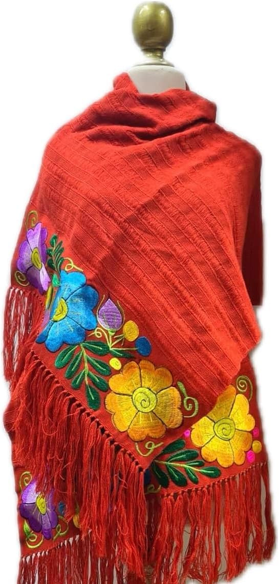 Beautiful Rebozo perfect to complement any outfit. It is embroidered with beautiful flowers, it is the perfect complement to any look. Measurements in inches length 76" with fringes width 21" With this beautiful scarf you can look beautiful for very little money. Large, soft and high quality pashmina scarf. Mexican rebozo woven on a waist or backstrap loom.