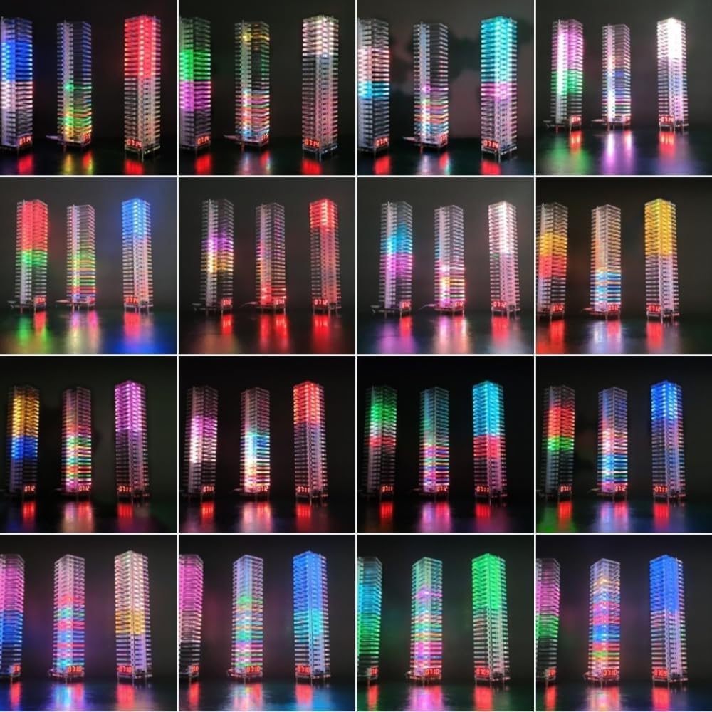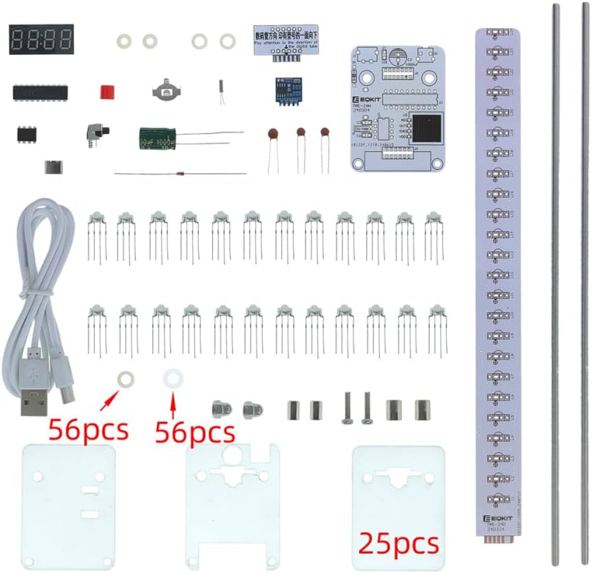 Introduction:1>.It is a Voice Control Audio Spectrum Indicator Clock RGB LED Indicator DIY Kit.2>.It also can work on clock mode which can display current time.3>.It can display in RGB according to the input audio signal from microphone.It can be used to display the intensity of audio.4>.The number of LED displayed changes according to the intensity of the audio.Feature:1>.24pcs highlight RGB colorful LED2>.Clock Mode and Spectrum Mode3>.Sound Control Display Spectrum4>.9-Kinds Color Flashing Effect5>.6-Kinds Spectrum Display6>.1~12 Sensitivity Level7>.1~8 Brightness Adjustment Level8>.1~4 LED Flashing Speed9>.12/24H Clock ModeParameter:1>.Work Voltage:DC 5V2>.Work Current:75mA(Max)3>.Power Type: USB4>.Color:RGB LED5>.Work Temperature:-40℃~85℃6>.Work Humidity:5%~85%RH7>.Size(Installed):44*59*257mmApplication:1>.Training welding skills2>.DIY production3>.Project Design4>.Electronic competition5>.Present giving6>.Crafts collection7>.Home decoration8>.Souvenir collection9>.Graduation design10>.Holiday presents