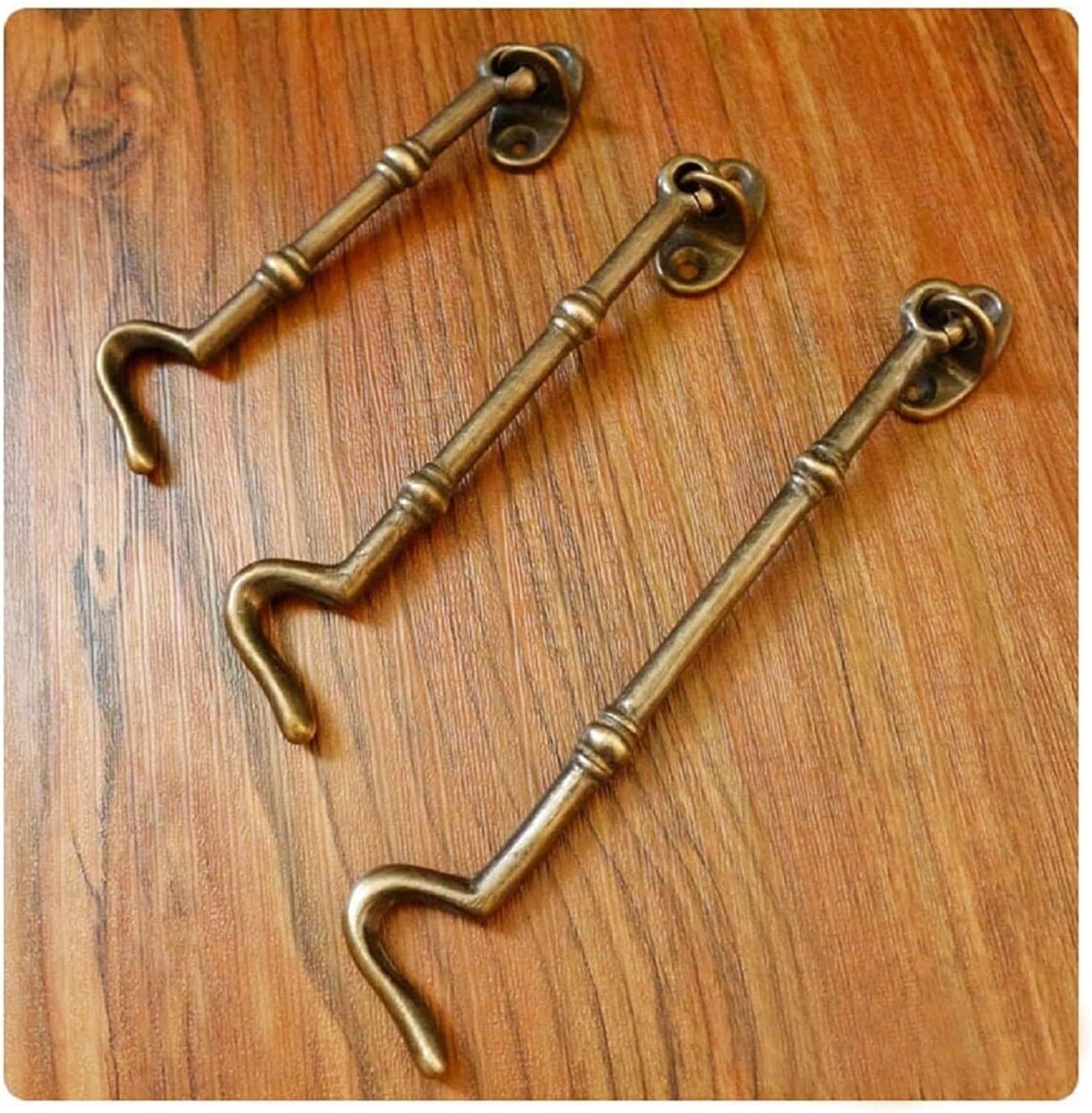 Features:High quality brass material, durable, not rusty, do not fade.This door hook can be used in interior and exterior applications, such as, cabinets, boxes, garden gates, lockers, yards, and so on.This hook has 180 degrees rotation vertically and horizontally.You can install the latch in the dangerous or private area, where the child can not touch or keep some private in the area,bringing you a sense of security.It is easily to install.Specifications:Material: Brass.Color: Gold.Size: 22.5cm.Package Content:2 x Cabin Hooks.