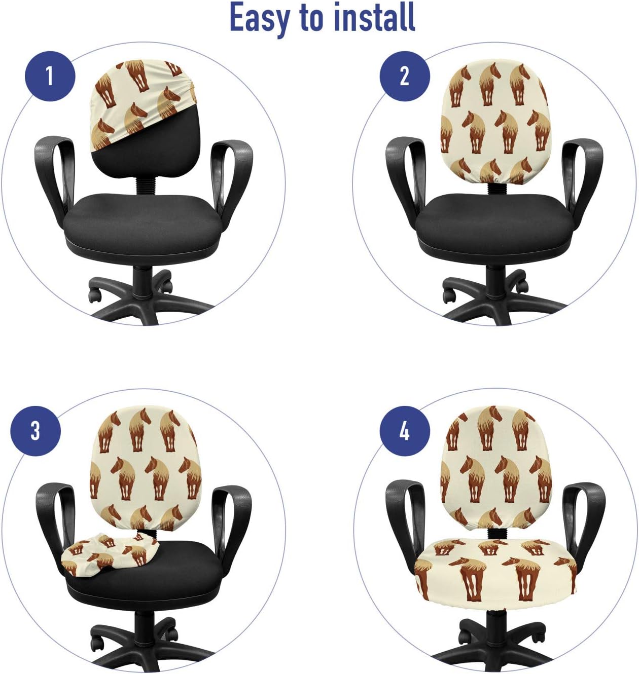 STANDARD SIZE - 2 Piece cover set. Backrest Cover: 13.5" to 17.5". Seat Cushion Cover: 13.5" to 17.5". FEATURES - Easy to install. Has ties to fasten the seat cover. For seat & backing of office chair. MADE FROM - %95 polyester %5 spandex lightweight knit fabric. Stretchable, protective printed cover. MACHINE WASHABLE - On cold cycle, Hang to dry. Soft and breathable, durable cover. No fading. PRINTED - With state of the art digital printing technology. ONLY CHAIR COVER, CHAIR IS NOT INCLUDED Add fun to your office time! Cover tear, rips and tattered edges of your old chair. It's easy to install and remove with smart elastic design. Protective and non-slip cover fits universal standard size office chairs. The material is lightweight, thin but durable. It'll add ultimate style to your gaming chair or studying area. Set assorted modes for every season; summer, Christmas, St Patrick's Day, Valentine's Day, Autumn, Sports Week and any theme you can imagine... Just pick your favorite from our thousands of various patterns. Also, these office chair covers are easy to take care of; machine washable, tumble dry on low. Or just buy one to make your day! This desk chair seat cushion protector adds personality to your space as well as shields from scratches, spills, and accidents. Elastic edges secure the cover quickly. With its stretchable design, it fits square or round seat cushions and backings of simple standard office chairs. These protector covers can be a gift for your co-workers, mother, father, uncle, aunt, son, daughter, boyfriend, girlfriend, husband, wife or simply white-collar worker friends. Before purchasing, please measure your chair size. The digital images we display have the most accurate color possible, however, due to differences in computer monitors, we cannot be responsible for variations in color between the actual product and your screen. ONLY CHAIR COVER, NO CHAIR.