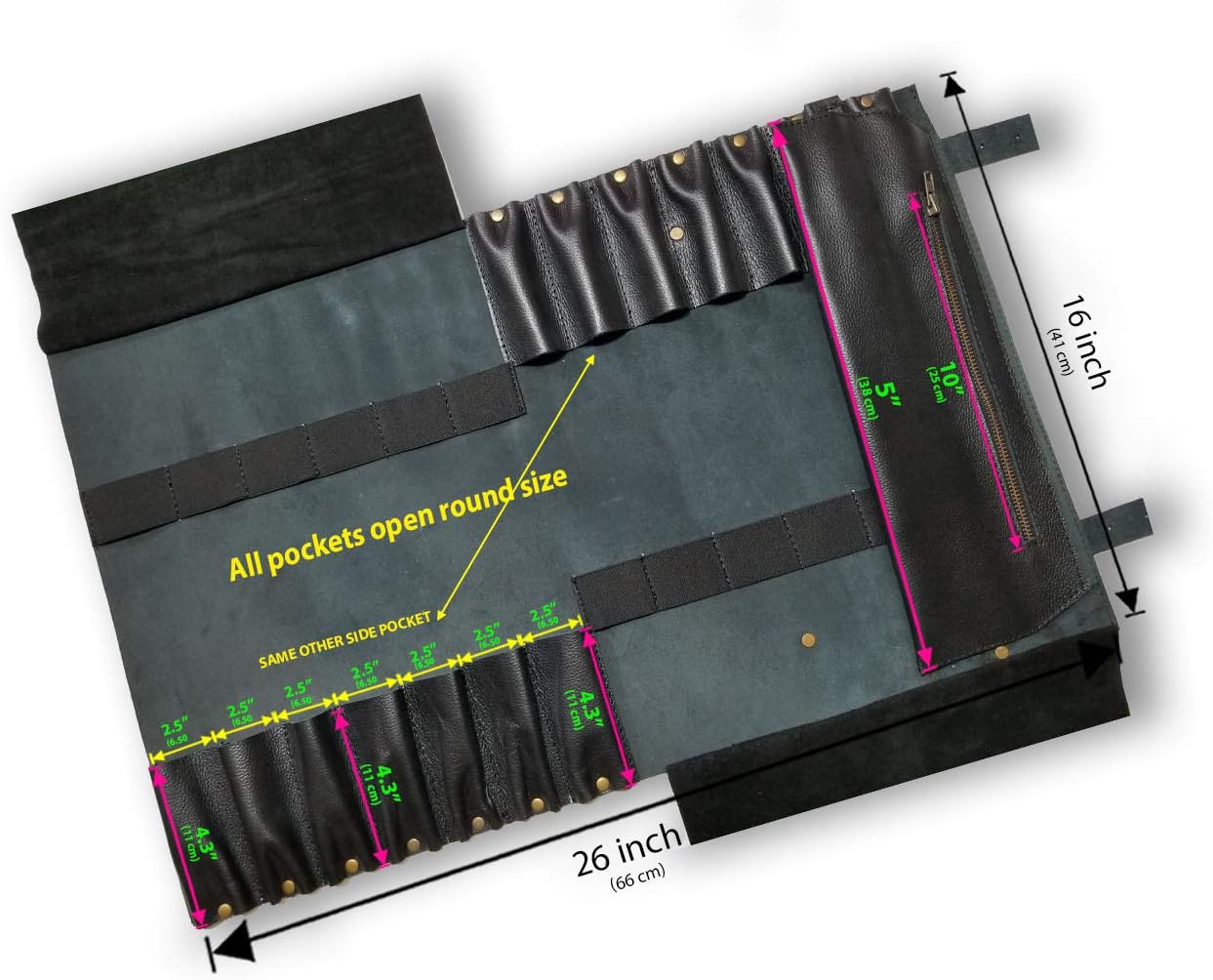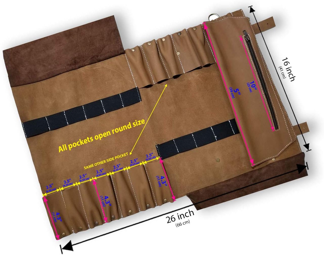 Professional Leather Chef Knife Bag- Perfect For Professional Chefs and Culinary Students Easiest and great way to store and transport your knives safely This bag is made of Lightweight premium leather. Perfect knife space to hold and secure your knives firmly