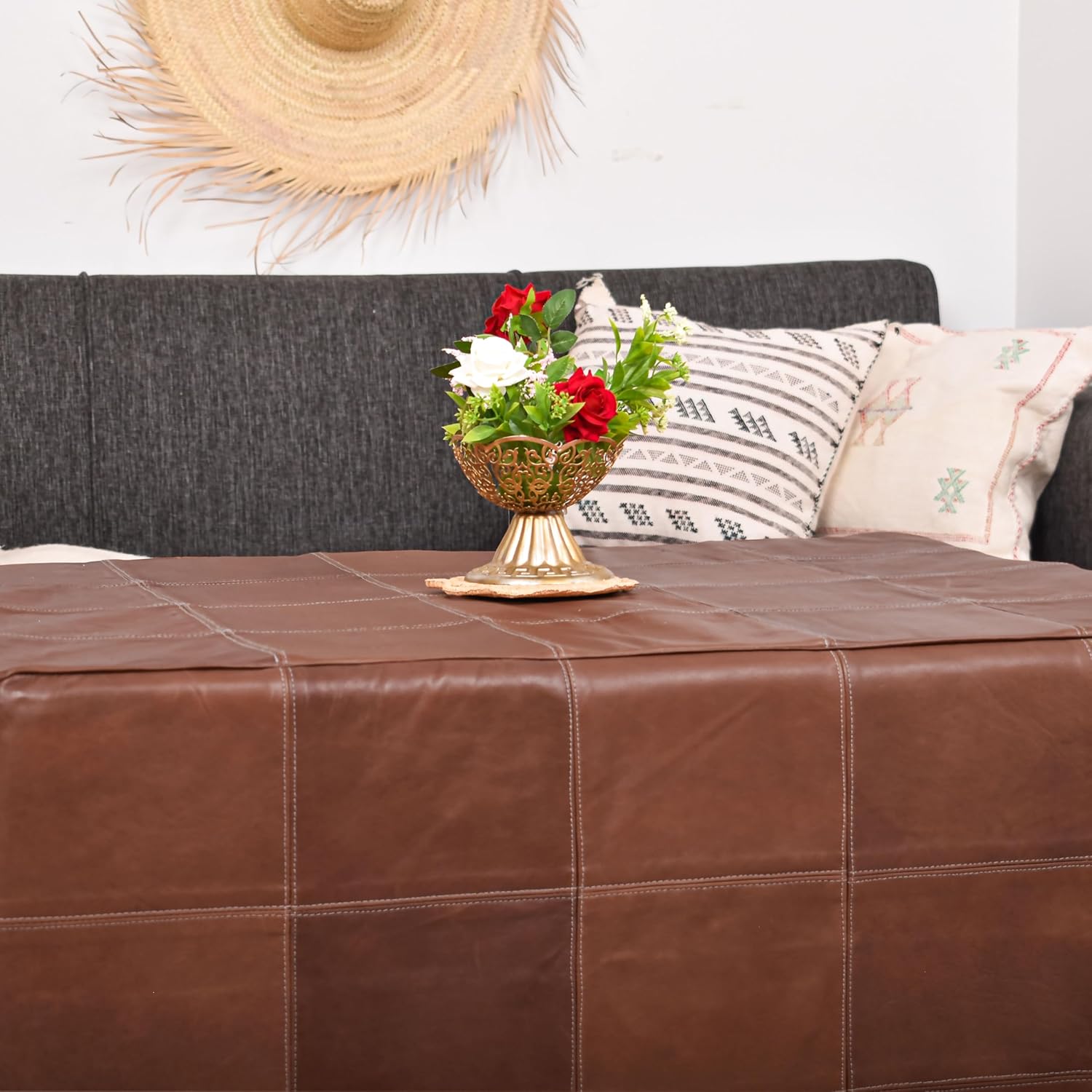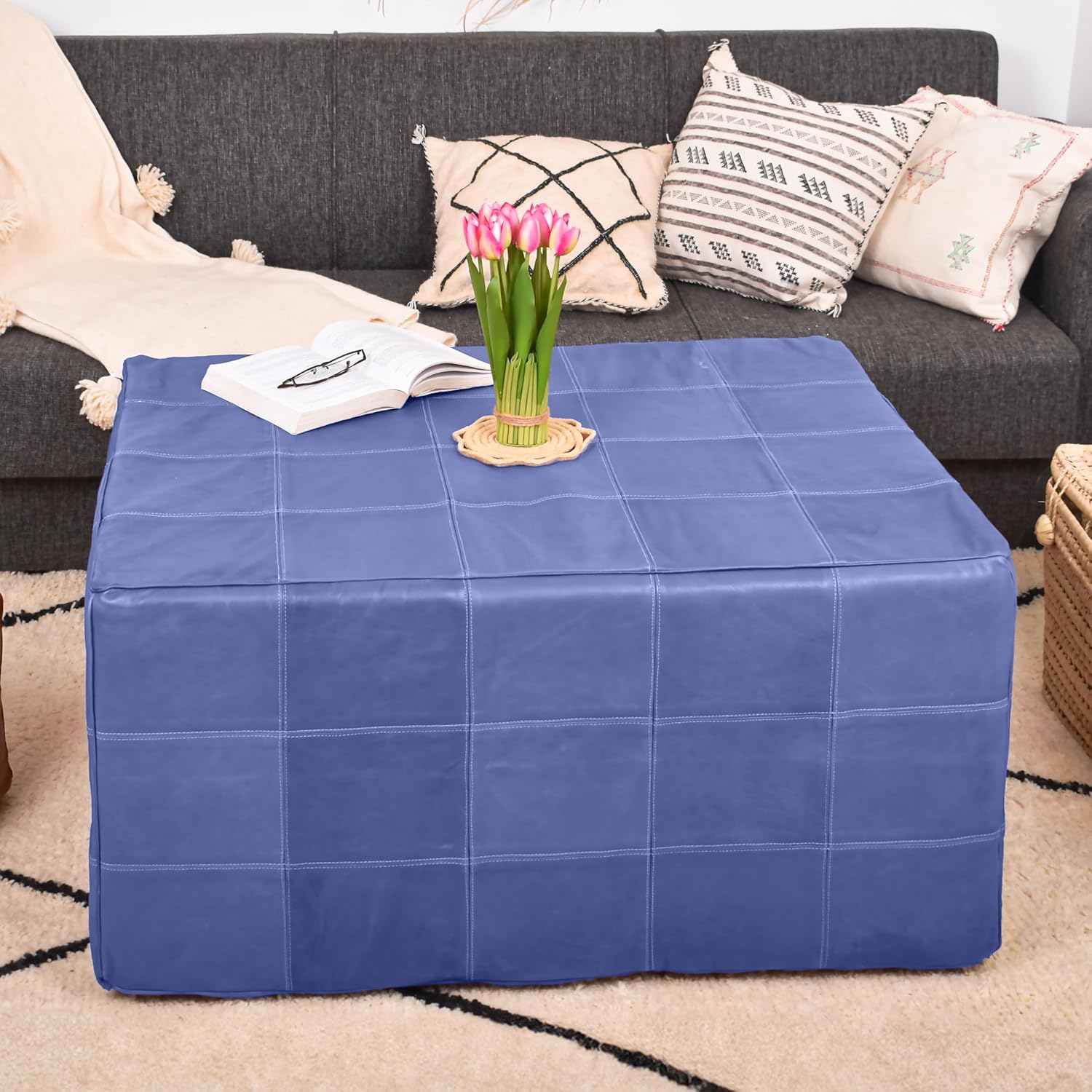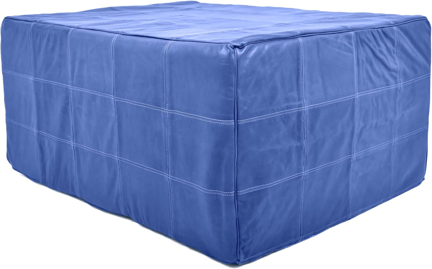 Moroccan Large Square Leather Pouf OttomanElevate your living space with our Moroccan Large Square Leather Pouf Ottoman. Crafted in Marrakesh, this piece brings authentic Moroccan artistry into your home. Ideal as a footrest, extra seating, or accent piece, this leather pouf ottoman adds boho-chic charm.Handcrafted ExcellenceEach Moroccan pouf ottoman is handmade by skilled Moroccan artisans using premium quality genuine leather. Unique craftsmanship ensures your leather ottoman pouf is a cherished addition to your decor.Versatile and Functional DesignAvailable in multiple colors and sizes, our square pouf ottoman fits seamlessly into any decor. Use it as a leather poof, brown pouf ottoman, or floor pouf. It's perfect as a foot pouf ottoman, boho pouf ottoman, or leather foot stool.Premium Quality LeatherCrafted from the finest materials, our Moroccan leather pouf is durable and luxurious. The leather ottoman cover features a strong zipper on the underside, making it easy to fill. Delivered unstuffed, you can personalize the firmness and comfort.Eco-Friendly and SustainableOur unstuffed pouf ottoman promotes recycling by allowing you to reuse materials for stuffing. Customize your pouf to your liking and reduce waste.Product Details100% Genuine Leather, Handmade in Marrakesh, MoroccoIncludes cover only, delivered unstuffedStrong zipper on the undersideAvailable in multiple colors and sizesEnhance your decor with the beauty and functionality of our Moroccan Large Square Leather Pouf Ottoman. Order now for a blend of tradition and modernity.
