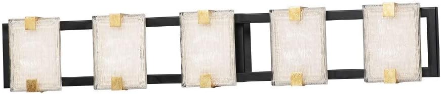 Piastra style glass diffuses integrated LED to shimmer radiantly. Suspended on a Black frame with Gold Leaf accents, this perfect blend of contemporary and traditional design adds glamour to a broad spectrum of design aesthetics.