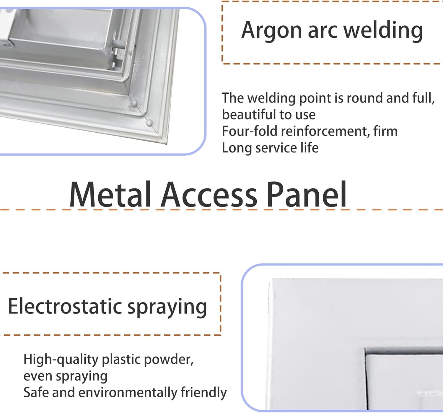 Transform your space with our Aluminum Alloy Access Panel, designed for seamless integration and efficient ventilation. Crafted with a robust Aluminum Frame and a Galvanized Steel Door, this access panel provides an ideal solution for discreetly concealing wall and ceiling openings while ensuring easy access to essential systems. The innovative magnetic latch system allows for quick and effortless operation, making it a practical choice for areas requiring regular inspection. Whether it's vents, low-voltage boxes, or plumbing valves, this access door is specifically engineered for convenience and efficiency. Its sleek design sits flush against walls or ceilings, maintaining a clean, minimal look that complements any decor. This makes it perfect for home renovations, commercial installations, and even creative projects where you might want to hide plumbing or wiring. The panel can easily be painted to match your interior, ensuring it blends seamlessly into your environment. Beyond functionality, this versatile access panel can be creatively repurposed as a hidden shelf or a decorative vent, showcasing its practicality without compromising style. Simple to mount on various surfaces, it’s designed for quick installation, making your life easier while enhancing your space. Choose our Aluminum Alloy Access Panel to combine aesthetic appeal with essential accessibility, making it a valuable addition to any home or business setting.