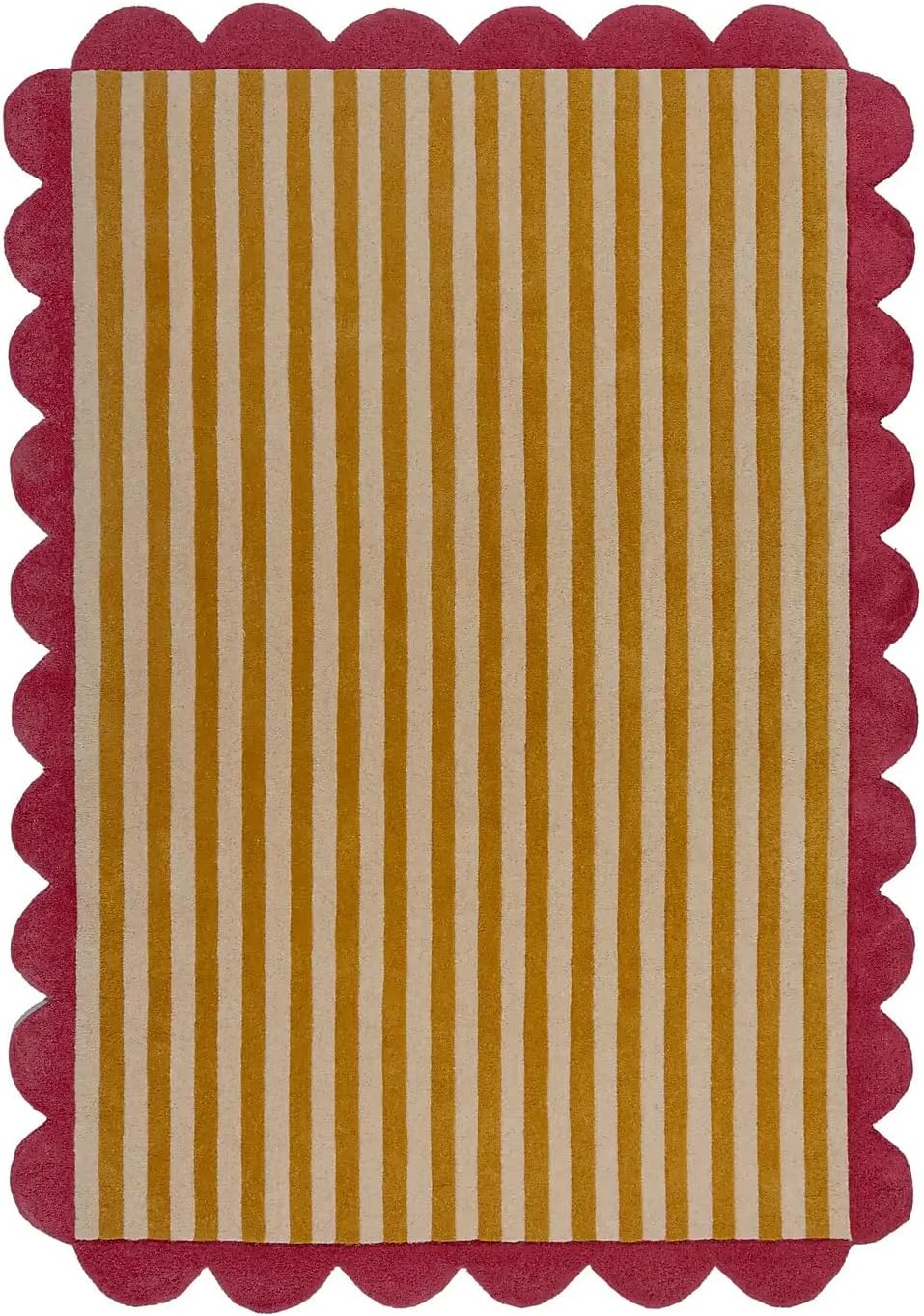 Anthrofy Milo Scallop Area Rug – 6’ x 9' – Handmade Wool Area Rugs – Yellow – Rugs for Living Room, Bedroom – Anti-Skid – Carpets with Non-Slip Natural Backing with 100% Cotton
