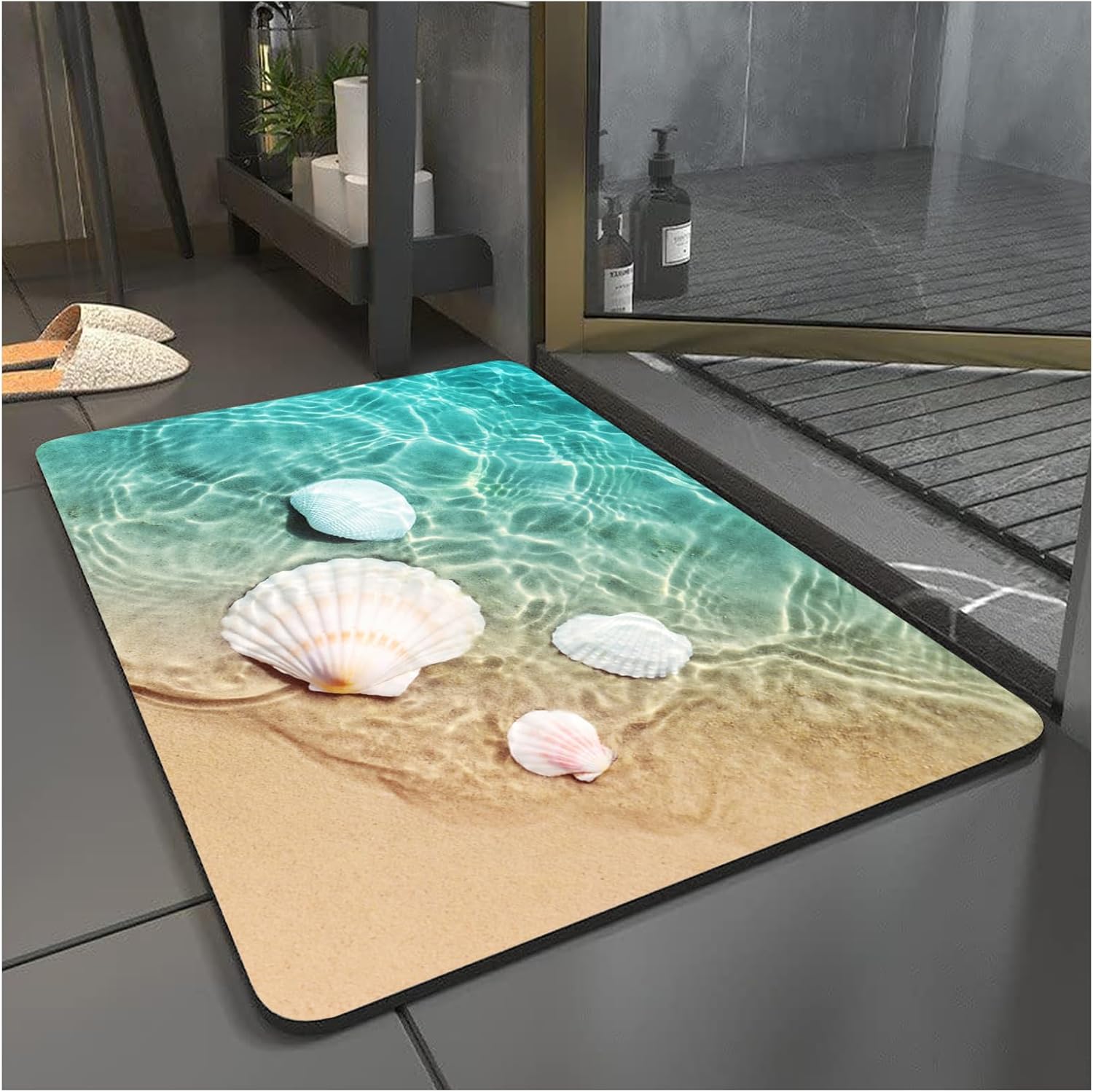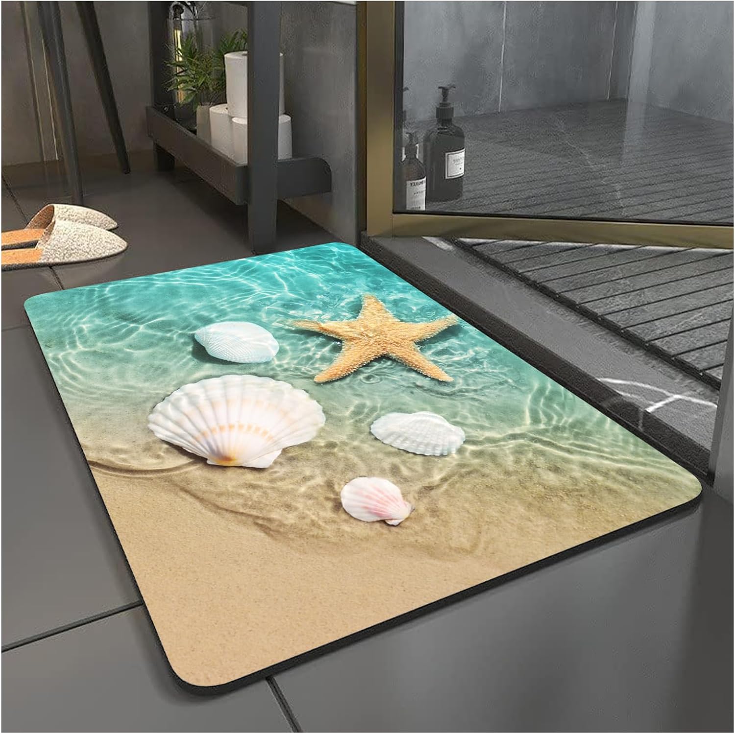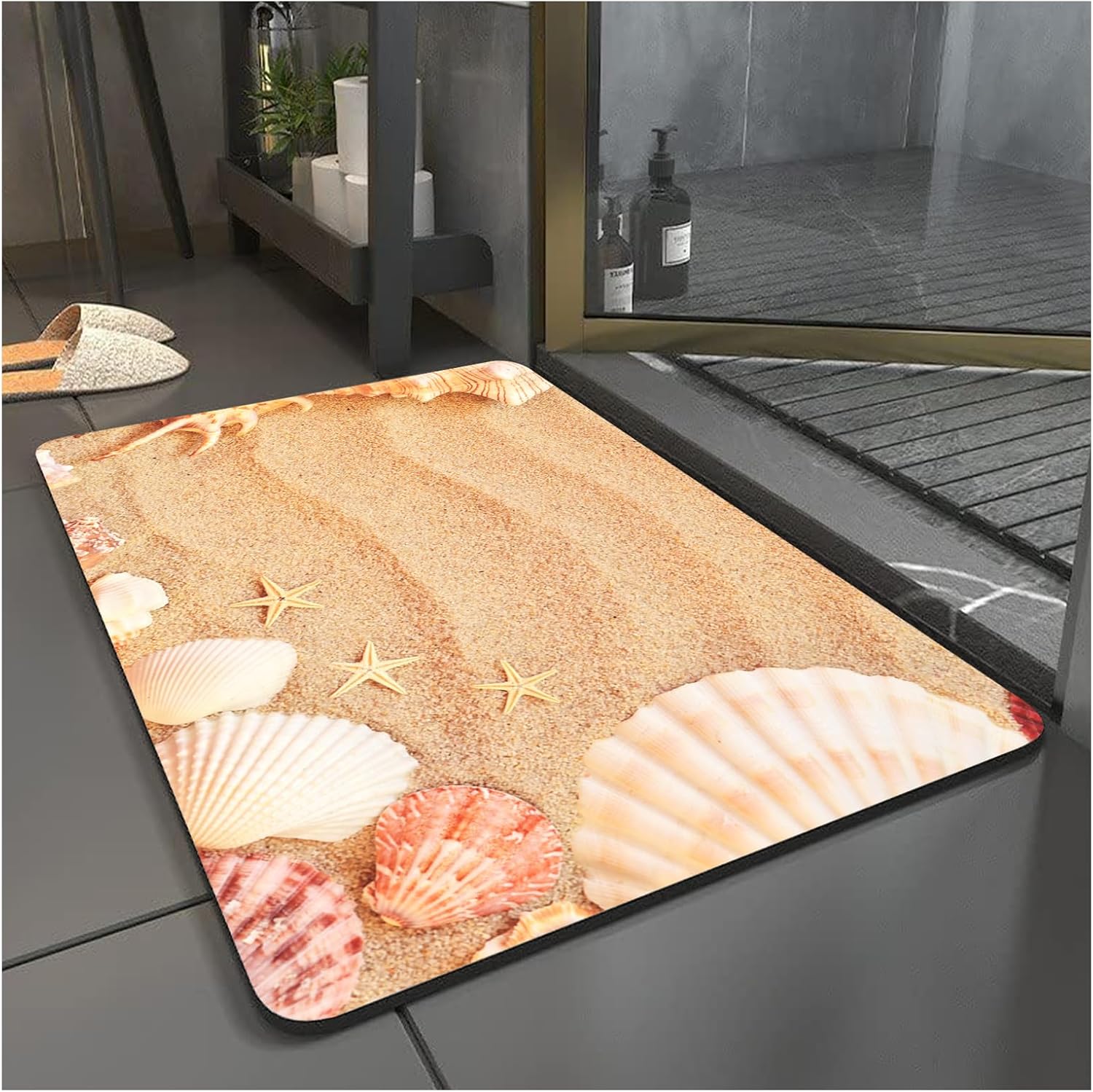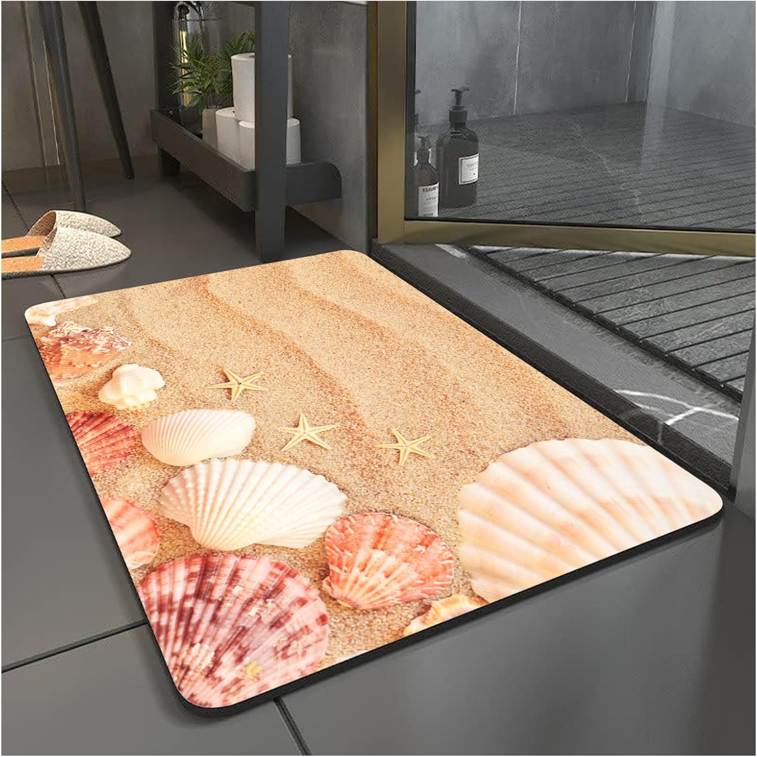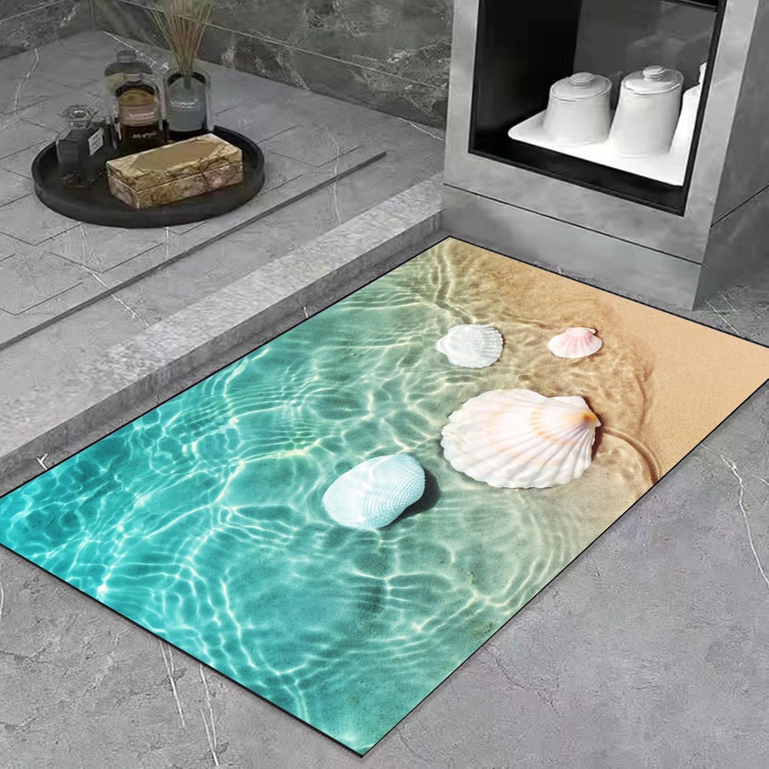MiZuH 4 x 5ft Bath Mat Rug-Rubber Non Slip Quick Dry Super Absorbent Thin Bathroom Rugs-Washable Bathroom Floor Mats-Shower Rug for in Front of Bathtub, Shower Room, Sink(Beach Shells)