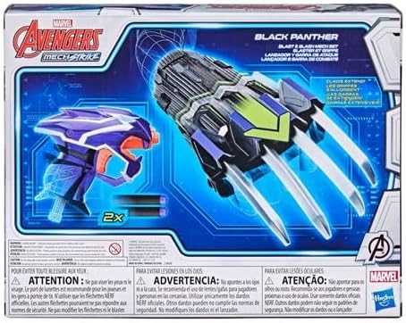 The NERF Blaster is styled to look like Mech Strike figures and gear from Marvel, and it's designed to be easy to load and launch the dart. Boys and girls can Mech Up! Suit up for cosmic combat with this NERF Blaster and Slash Claw, chase villains, and strike noxious enemies who seek world domination, then reload and do it again; it's all in a hero's Mech Strike adventure! Kids can imagine slashing into action like the Wakandan warrior hero