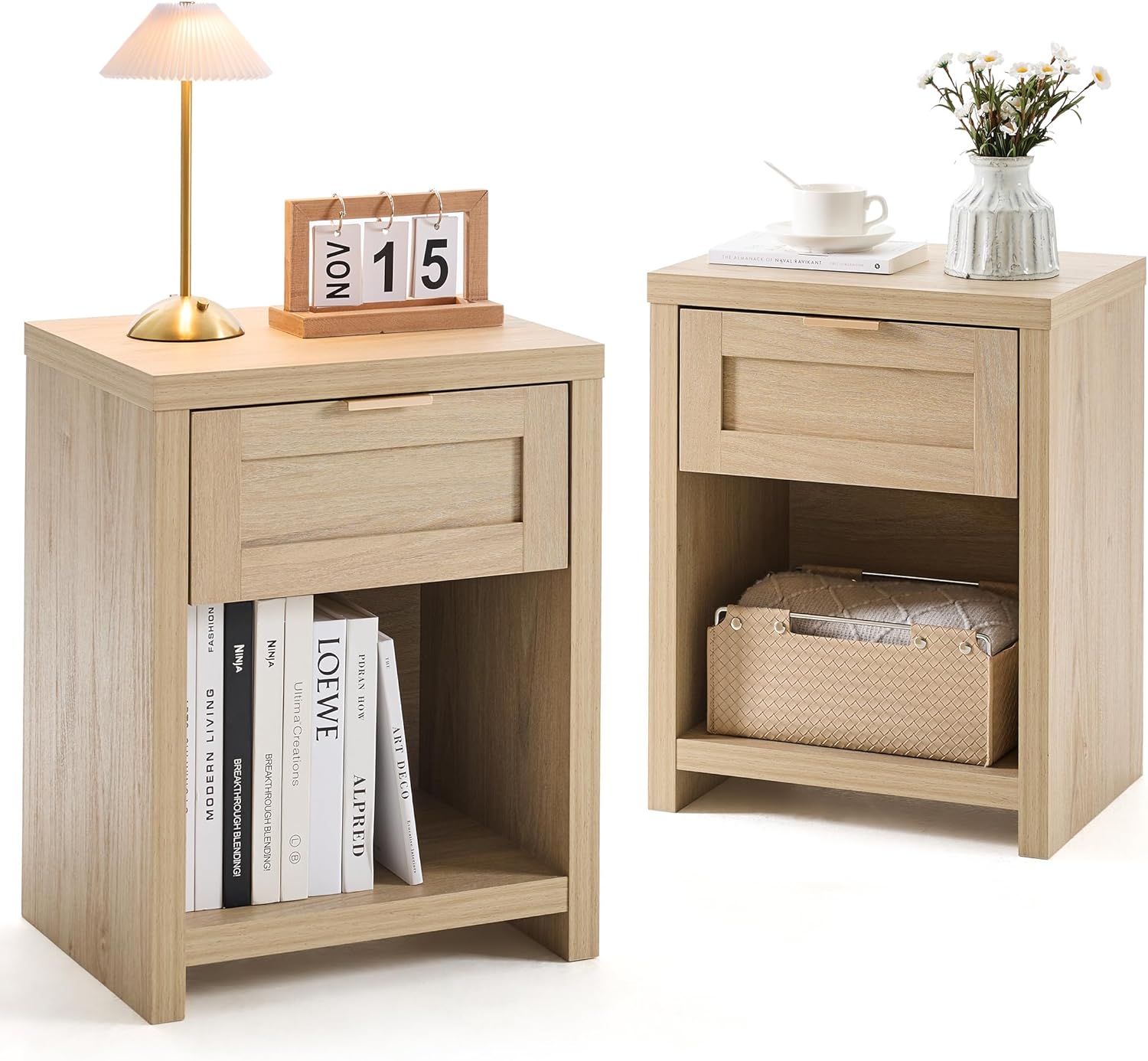Night Stand Set 2, Boho End Table with Drawer and Storage Shelf Accent Table, Minimalist Sofa Bed Side Accent Table with Drawer for Bedroom Living Room
