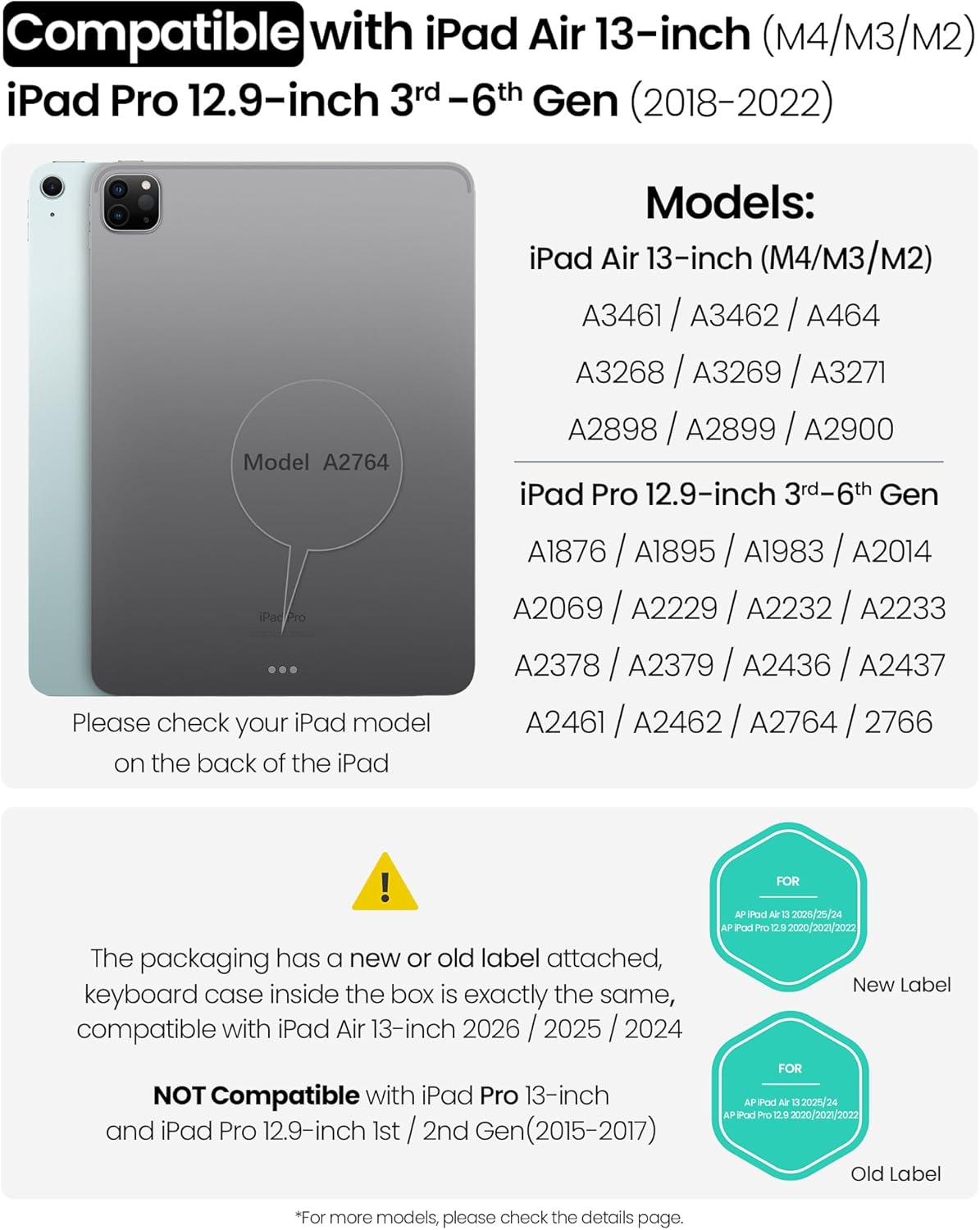 | Compatible Devices | iPad Air 13-inch (M2, 2024), iPad Air 13-inch (M3, 2025), iPad Air 13-inch (M4, 2026), iPad Pro 12.9-inch 5th/4th/3rd Gen, iPad Pro 12.9-inch 6th Gen |