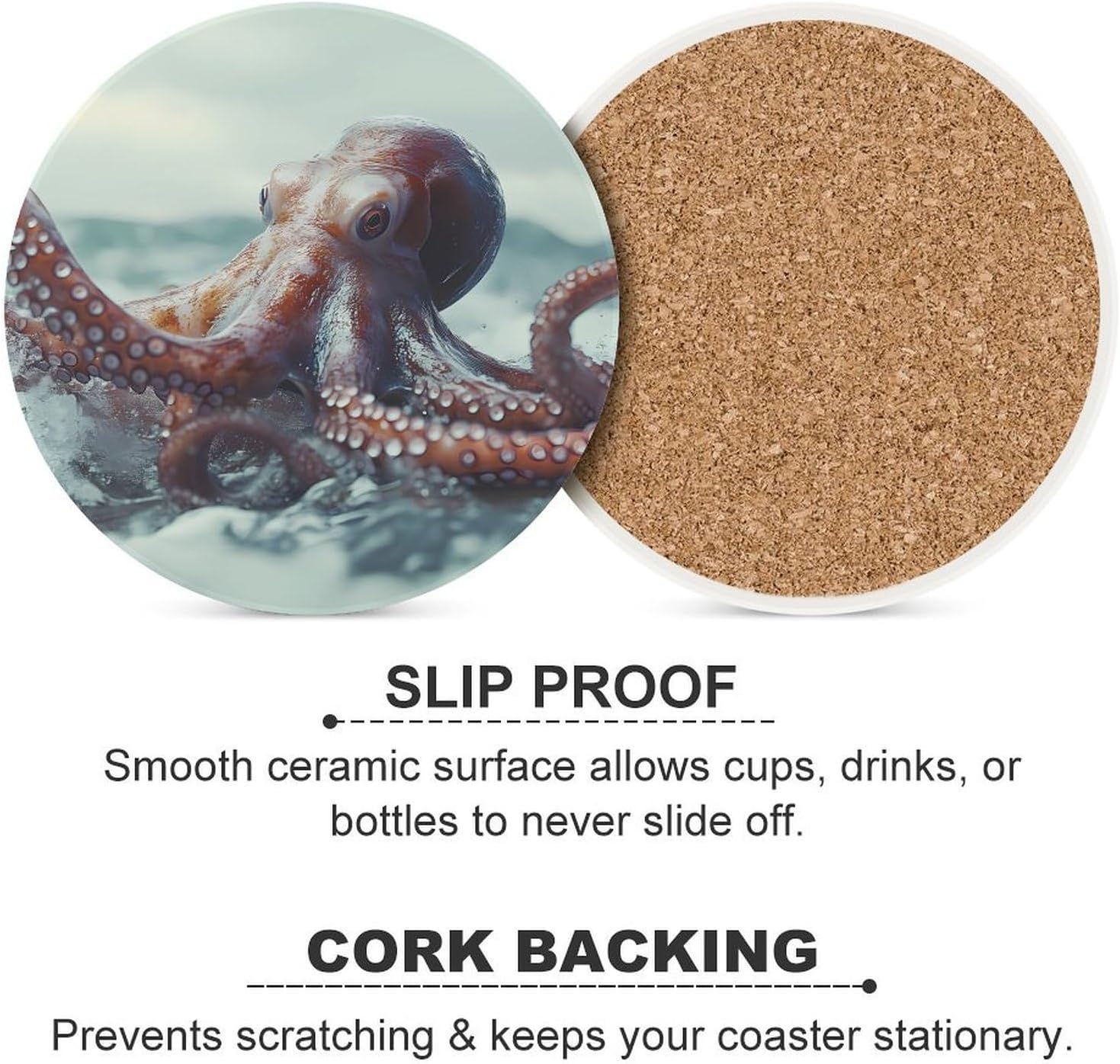 coasters,coasters set of 4,coasters set of 6,cute coasters with Funny Pattern Printed Ceramic Coasters with Cork Base Cup Holder Absorbent for Drinks Coasters Round Tabletop Protection Mat Decorative Cute Coffee Cup Beverage Coasters