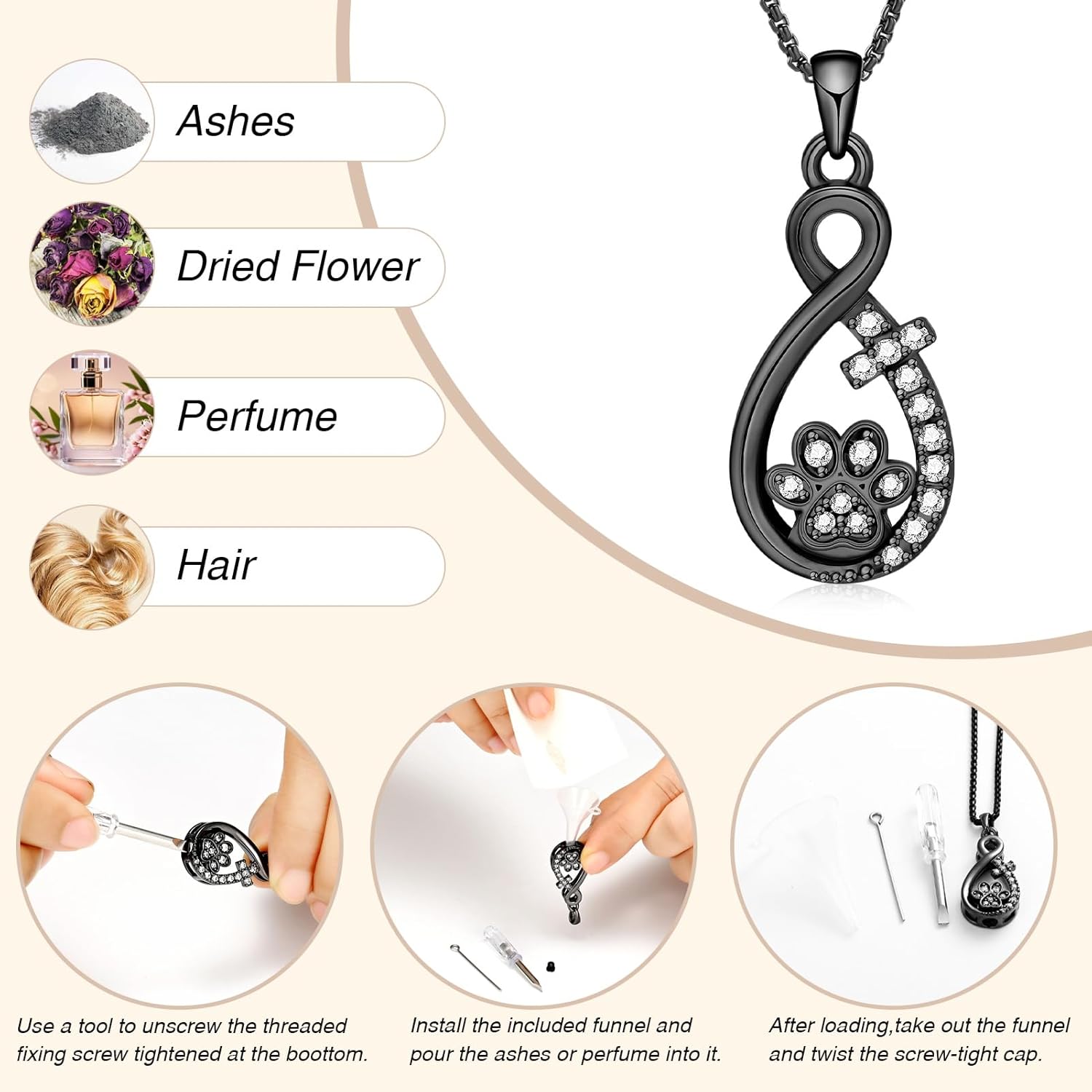 Specifications : Material : Stainless steel & 100% Waterproof Clasp type : Lobster Chain type : 20'' Rope Chain + 2'' Extension chain Package : Including one gift box,chain and funnel kits suitable as a gift! ❤️ Personalized customization ❤️ : Clink "Customize Now"; Filling the required parts including Product Color, Font Name, Font Color and Engraving Content ; customized your own memory jewelry . Customize your photo, and engrave the text you want to say. It's not only a cremation jewelry, but a connection between you both. Item type name : Cremation urn necklace for ashes - pet memory jewelry for ashes necklace - pet urn necklace for ashes - urn pendant for ashes - Pet urn necklace for ashes dog / cat - urns for human ashes necklace - urn necklaces for ashes for women - urn necklace for ashes for men - ashes keepsake - memorial necklace for ashes - ash lockets - urn stainless steel waterproof memorial pendant - keepsake cremation pendant memorial jewelry for women - urn jewelry - memorial cremation jewelry ashes keepsake urns pendant necklace for ashes for women men - jewelry for ashes - cremation ashes - pet urn necklace for ashes - cremation ash pendant ❤️ Store your memories ❤️: OINSI cremation necklaces for ashes will preserve your memories of your loved ones and bring you companionship and comfort. Wherever you are, you can keep it close to your heart. It is not only a decoration, but also a nice way to honor your loved one. We hope all of you can recover from the sadness and have power to be strong. ❤️Meaningful gift choose ❤️: These beautiful urn cremation pendent necklaces make meaningful gifts for family and friends on anniversary / funeral / mourning / birthday /church prayer day , and can be applied to hold items as keepsakes