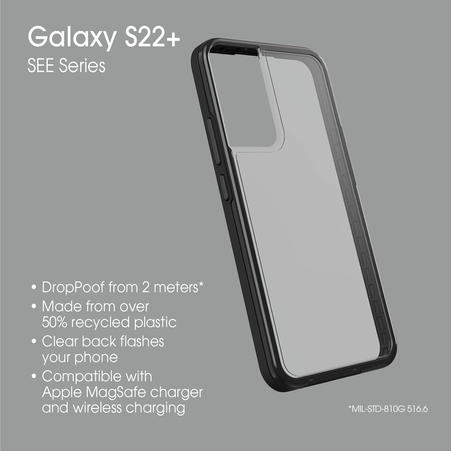 There’s a new vision of sustainability and simplicity. Meet SEE, the clear-backed case that’s making a big impact. Made with over 50% recycled plastic and DropProofto 2 meters, SEE has a small environmental footprint and withstands big calamities —while keeping your phone on display. And its low-profile, form-fitting design leaves your phone feeling just right in your hand and back pocket.