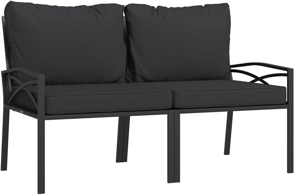 This modern garden chair is sleek and made from durable powder-coated steel, promising longevity even outdoors.for chilling out or socializing, its stylish design goes well with any balcony or garden look, while the plush grey cushions offer fabulous comfort, making it a top pick for outdoor relaxation.Durable Build: Made with powder-coated steel, this garden chair has a strong frame that can handle the elements, making it long-lasting. The coating means it won't rust or corrode, which is key for outdoor furniture.Comfy Seating: Each chair has plush cushions made from weather- polyester fabric, giving a cozy spot for lounging. The cushions have a zipper for easy removal and cleaning, keeping your seating fresh.Elegant Style: The modern look is enhanced by the curved armrests, making it not just comfortable but stylish too. This chic addition enhances your outdoor vibe.Versatility: These garden chairs fit various spaces—perfect for balconies, patios, or anywhere outdoors, offering great comfort for gatherings or peaceful solo time. Their sleek design and color scheme make them a stylish choice for any garden furniture mix.Space Efficient: With measurements of 29.5 in wide, 24.4 in long, and 31.1 in high, these chairs work well in smaller areas while still allowing comfy lounging.Number Of Items: 2Color: Black Shape: SquareMaterial: Metal Powder-Coated SteelFinish: Powder-Coated Indoor/Outdoor: Indoor / OutdoorCover Included: NoRoom: Garden and terraceCapacity: 242.5 lbsMaximum Number of People: 1Maximum Weit: 242.5 lbsDimensions: 29.5 x 24.4 x 31.1 in (W x L x H)Leg Height: 13.8 inWeight: 36.6 lbsSeat Depth: 23.6 inSeating Capacity: 1Swings: No