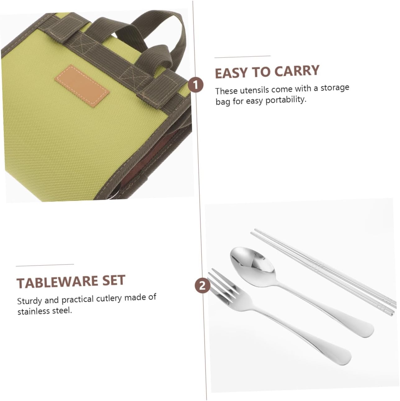 Package Include 4 x fork 4 x spoon 4 8 x chopstick 1 x carry bag Features - Color: Silver. - Note: package is random color - Material: Stainless steel. -Product Info:Stainless steel tableware - Size: 12 cm. - They are corrosion-free and rust-less because of using the material of stainless steel, keep shiny for a long time. -These flatware and the small bag are all washable, easy to clean and easy to carry with stainless steel portable tableware. - Lightweight fork spoon chopsticks plate cutlery set portable stainless steel spoon. - Convenient to use and carry, suitable for travel and outdoor use camping silverware kit. - With a storage bag, this flatware set is convenient to carry in a backpack or purse tableware chopsticks.Goods Descriptionfork chopsticks It is one of the for you.portable chopsticks travel Are you looking for a set of professional, yet camping cutlery? Are you in search of a sturdy, trustworthy tool that can do multiple jobs at once? , ! Our professional camping cutlery set must meet you needs