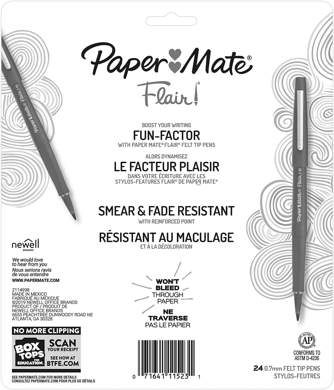 Paper Mate Point Guard Flair Bullet Point Pens will make you love writing. Each of the pens features Point Guard to prevent the tip from fraying, so you always produce neat lines even after repeated use. Express yourself with flair. Colorful, quick-drying, water-based, smear-resistant ink always leaves a great impression that won't bleed through paper. Every stroke produces a bold, clean line, making Flair perfect for drawing, editing documents and checking papers. Point Size: 0.7 mm; Point Type: Medium; Ink Color(s): Assorted; Ink Color(s) Assortment: Black; Navy; Lime; Red; Tangerine; Green; Yellow; Sky Blue; Blue; Purple; Magenta; Lilac; Pumpkin; Mocha; Slate; Cranberry; Guava; Orchid Lei; Pink; Plum; Papaya; Scuba Dive; Passion Fruit; Surf's Up.