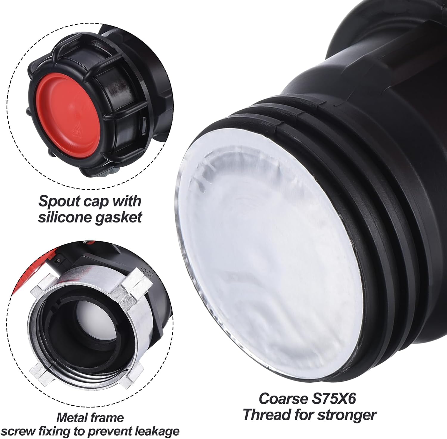 2" COARSE THREAD & 75mm IBC TOTE VALVE - Our IBC Tote Adapters are designed to fit 275-330 gallon tanks. Ball valve port size of 1/2", and a 1/2" female thread of 20mm/0.78", which fits most standard US IBC containers, and other plastic drums. Our IBC Big Bag Adapters come with coarse S75x6 threads, 2.95" (75mm) ID, 0.19" (5mm) pitch. The outer diameter of the drain cap is 60mm/2.36". These two adapters are connected together for use. (NOTE: Please check if the valve diameter is 60 mm/2.36 inches.)DURABLE MATERIAL - Our water tank hose adapter is made of brass, and plastic material, and the 2.95" IBC tote valve is made of durable metal, and plastic material, both are high strength, anti-corrosion, acid and alkaline resistant, and can withstand frequent use without cracking easily.LEAK-PROOF & EASY TO USE - The IBC tote tank adapter is thread mounted and equipped with rubber gaskets and sealing tape to prevent leaks. The IBC tote adapter switch is made of durable metal and non-slip silicone for easy on/off control of water discharge. Easy to install and use, simply connect directly to the garden hose fittings, no additional brass adapters are needed to install the garden hose.PACKAGE CONTAINS- You can get an assembled 2.95'' IBC adapter ball valve (Including IBC tote valve cover + spout cap + silicone gasket inside), 2.44" fine thread IBC tote adapter, 2.36" coarse thread adapter, 1/2" × 3/4" GHT Outlet Valve Faucet Garden Hose Connector, as well as silicone leak-proof gaskets and sealing tape.WIDE APPLICATIONS - Use this IBC portable adapter set together to protect the life of existing valves or provide control over water flow, allowing you to easily pump water out of tanks for gardening, agriculture, food processing and chemicals Processing etc.