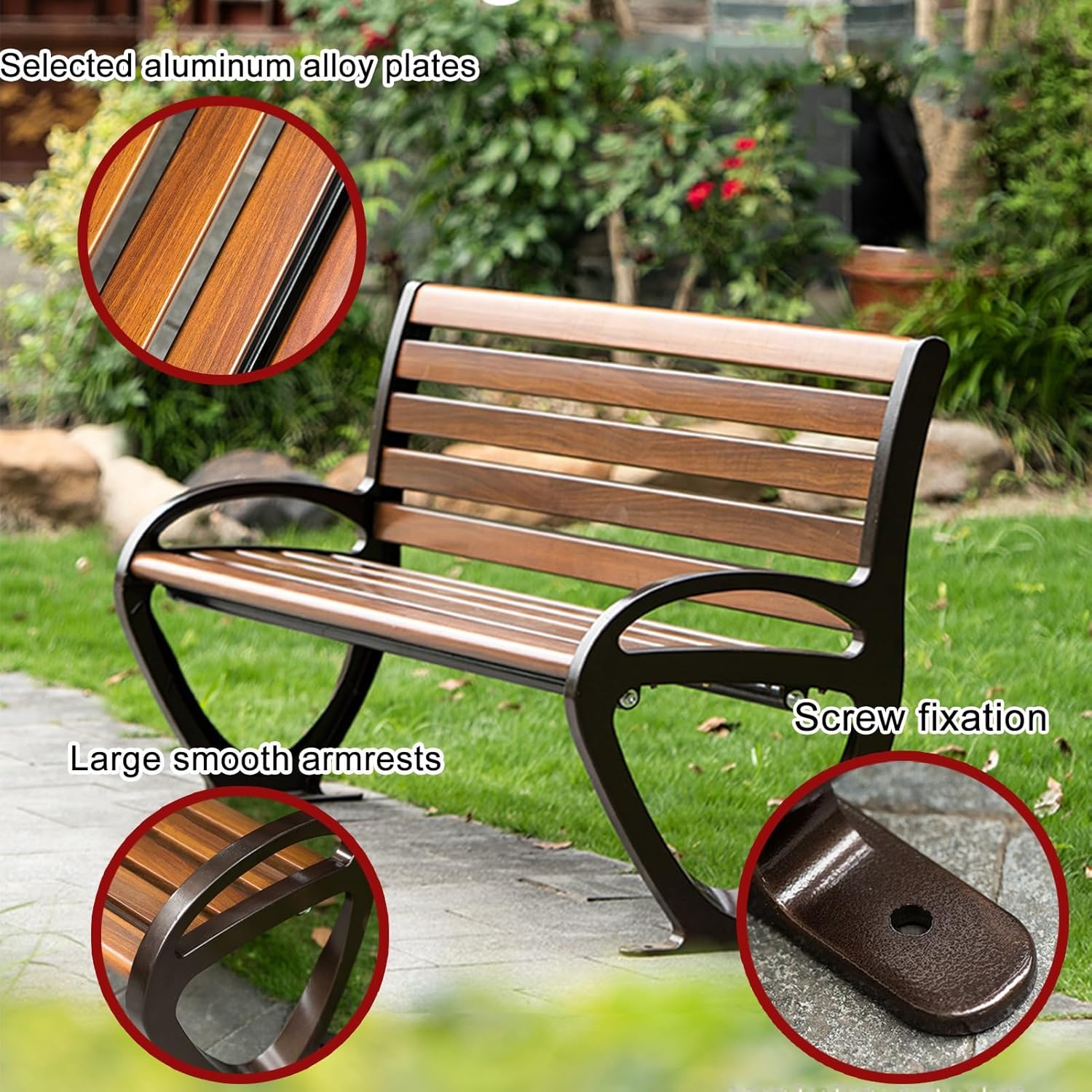 ★With their natural, simple yet modern style, garden benches are perfect for your home.★The armrests are slightly curved, allowing users to relax their arms in a comfortable position.★The wood used to construct this wooden bench has a smooth, burr-free surface, making cleaning easier.★You can fix it so that it does not move by fixing it to the floor.Specification:Name: Outdoor weather-resistant benchMaterial: solid wood/Aluminum alloyColor: Wood colorsize:120×40×55cm (59×15.7×21.6 inches)150×40×55cm (59×15.7×21.6 inches)120×46×77cm (59×18.1×30.3 inches)150×46×77cm (59×18.1×30.3 inches)Please confirm the size carefully before purchasingPackage contains:1 × garden benchUsage scenarios: locker rooms, corridors, shopping malls, stadiums, communities, parks, squares, bus stations, scenic spots, playgrounds, courtyards, lakes, etc.Please note:1. Due to different measurement tools and methods, there may be slight errors. View actual product.2. Product pictures may have slight color differences due to lighting or shooting angles. The actual product shall prevail.3. If you encounter any problems, please feel free to contact us. We will respond to you within 24 hours.