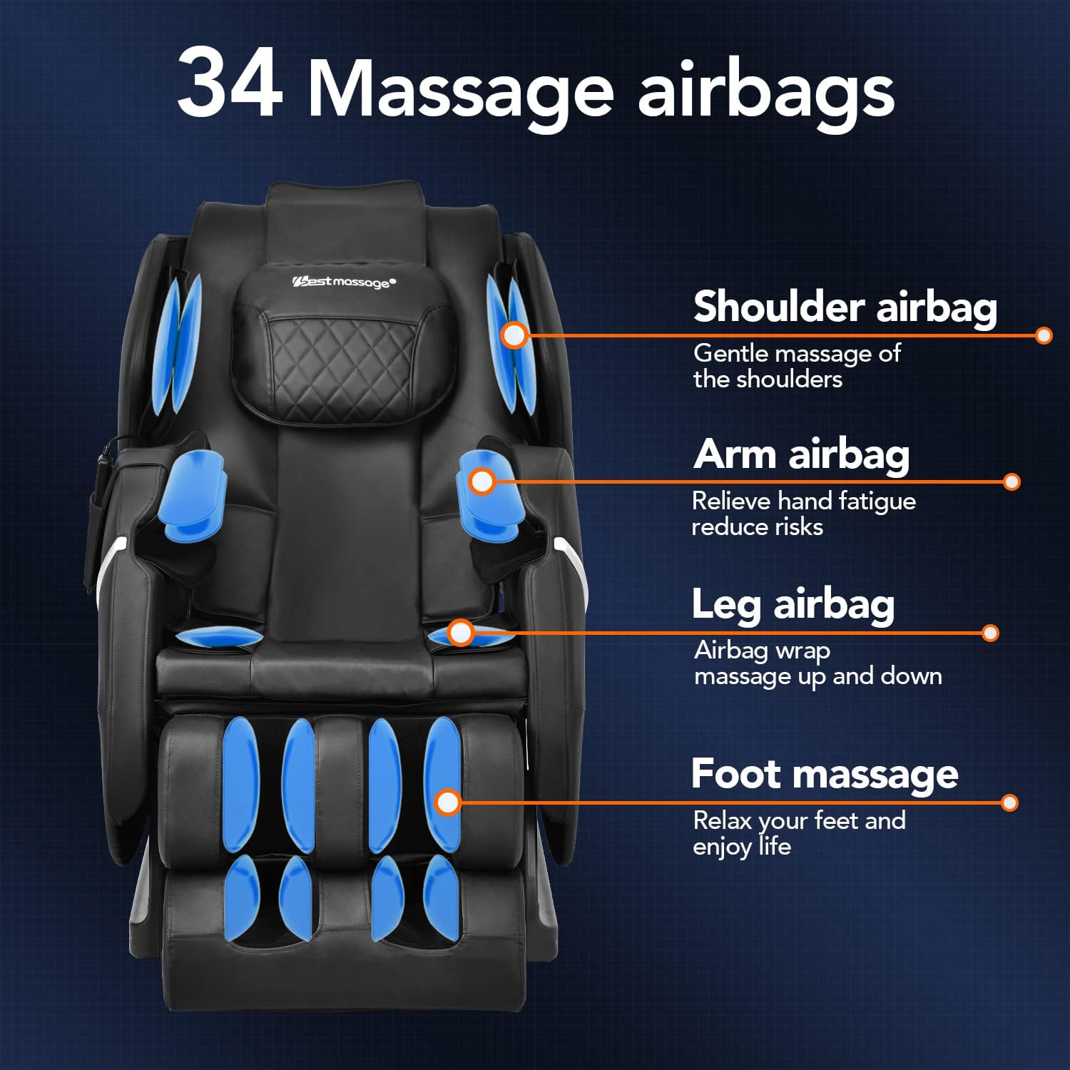 ❤Features❤ Zero-Gravity Design:Elevates your feet highter ,than your heart,minimizing the stress of gravity on your vertebrae, relieving back pain. Humanization Design:Extendable footrest, You can adjust the foot pedal length according to your height, 0-16cm foot pedal adjustment, so that the massage chair more fit your height body shape, give you a more comfortable massage experience . Airbag Massage Technolgy: Uniquely designed airbags are programmed to inflate/deflate separately which causes the body to twist and stretch on shoulders in Thailand stretching , lower back, hips, and thighs working simultaneously or individually. Warm back massage: Lower back heat therapy is ideal for occasional strains and chronic pain.Heating on Lumbar heating pads located on the Lumbar area. It offers the heat therapy which is a great compliment to the roller and airbag massage. Heating the body’s temperature is known to increase blood circulation and loosen tense muscles . Remote Controls :Our Massage Chair is in a Easy way to use: With remote controls, it will smoothly and safely control the lift witout to left massage recliner chair , stay in your recline and massage of the chair. It help you have a better relax massage chair in the massage chair zero gravity full body