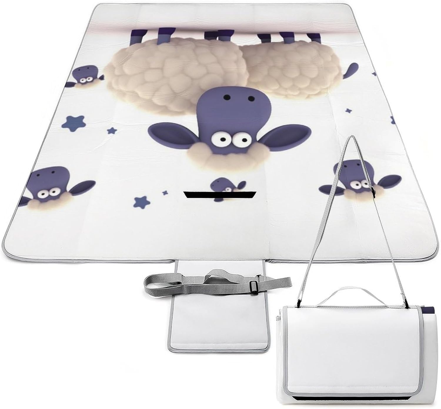 Material description:Flannel + sponge Soft and Thick:our Sheep printed picnic blanket Made of high-quality material, with good wear resistance, thickened design, fluffy and comfortable, just like sitting on a beach towel. Washing Instructions:Machine washable, air dry. Foldable and lightweight:The beach mat can be folded into a very mini size, and the Velcro design prevents it from loosening easily and does not take up too much space.