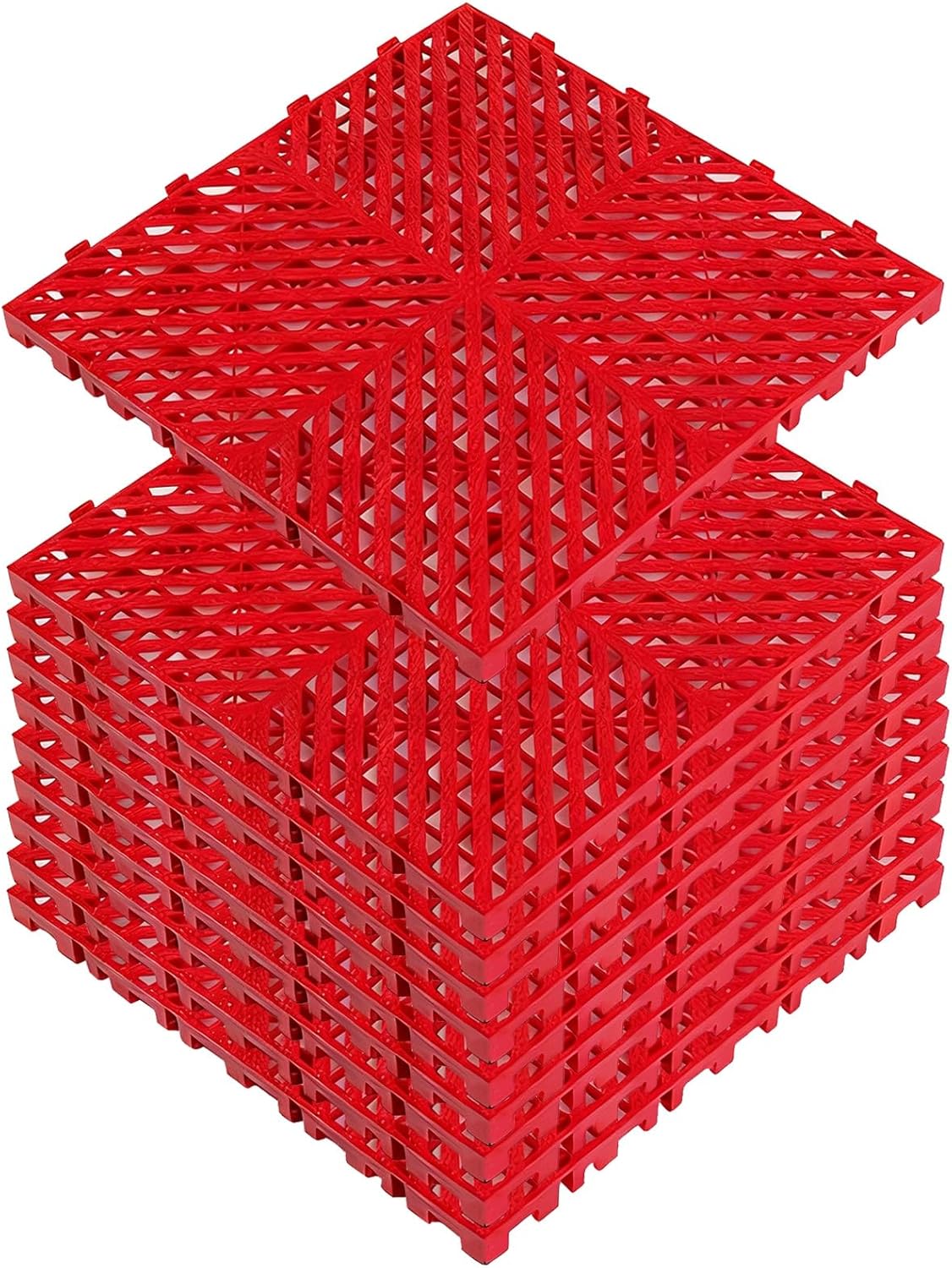 Product Details:Material: Polypropylene (PP)This product is made of high-strength polypropylene (PP) material, combining excellent toughness and durability to ensure it is not easily cracked.Its excellent high and low temperature resistance can withstand extreme environments from -30℃ to 100℃, making it suitable for general warehouses, factories, and workshops, and also capable of handling the low-temperature challenges of cold storage.The material itself is odorless, sturdy, reliable, and durable.Product Details:1. High Cost-Effectiveness. This is a truly multi-functional pallet, widely applicable to various scenarios such as warehouse floor mats, car wash floor mats, livestock farm floor mats, and basement storage. It achieves multiple uses in one item, providing you with an economical and efficient storage and elevation solution.2. Perforated Anti-Slip.The pallet surface features a uniformly distributed perforated grid design, which not only effectively reduces the overall weight but also provides excellent anti-slip properties, ensuring that goods and people on it are less likely to slip, and facilitating cleaning and drainage.3. Scientific Structure.The bottom of the pallet uses a reinforced rib design to ensure a stable load-bearing structure, combined with multiple evenly distributed support feet on the bottom of the pallet, making its load-bearing capacity excellent. The seamless, one-piece molding process further ensures overall stability and an extended service life.4. Interlocking Design.These plastic pallets are interlocking; pallets of the same size can be freely connected and combined. Different colors can be used to create patterns, beautifying the space and differentiating functional areas. You can easily assemble them into the large-size platform needed for your actual storage or layout requirements.Colors: Black, Gray, Green, Red, Yellow, BlueSizes: 40x40x2CM/16x16x0.8IN, 40x40x2.5CM/16x16x0.9IN, 40x40x3CM/16x16x1IN.Includes: 10 pallets of the same size.