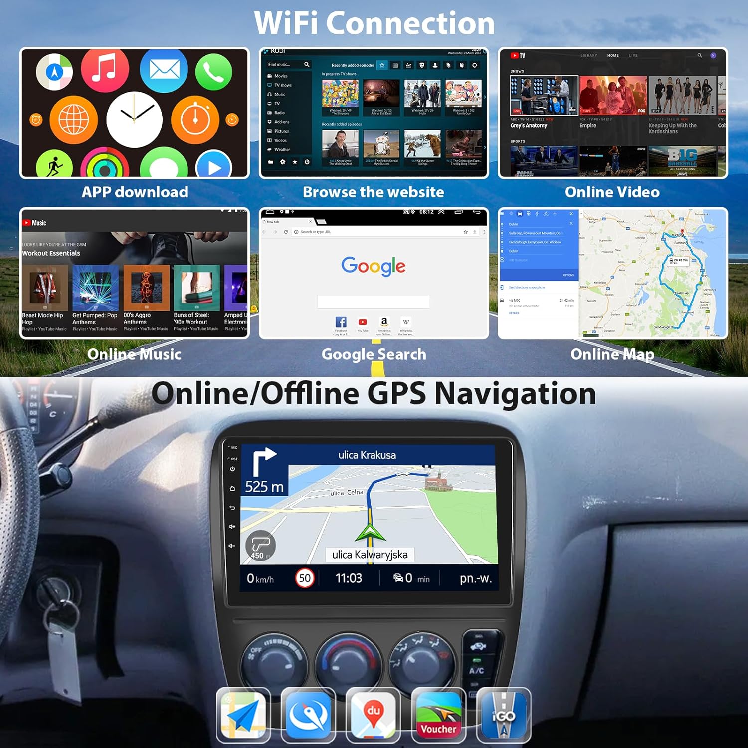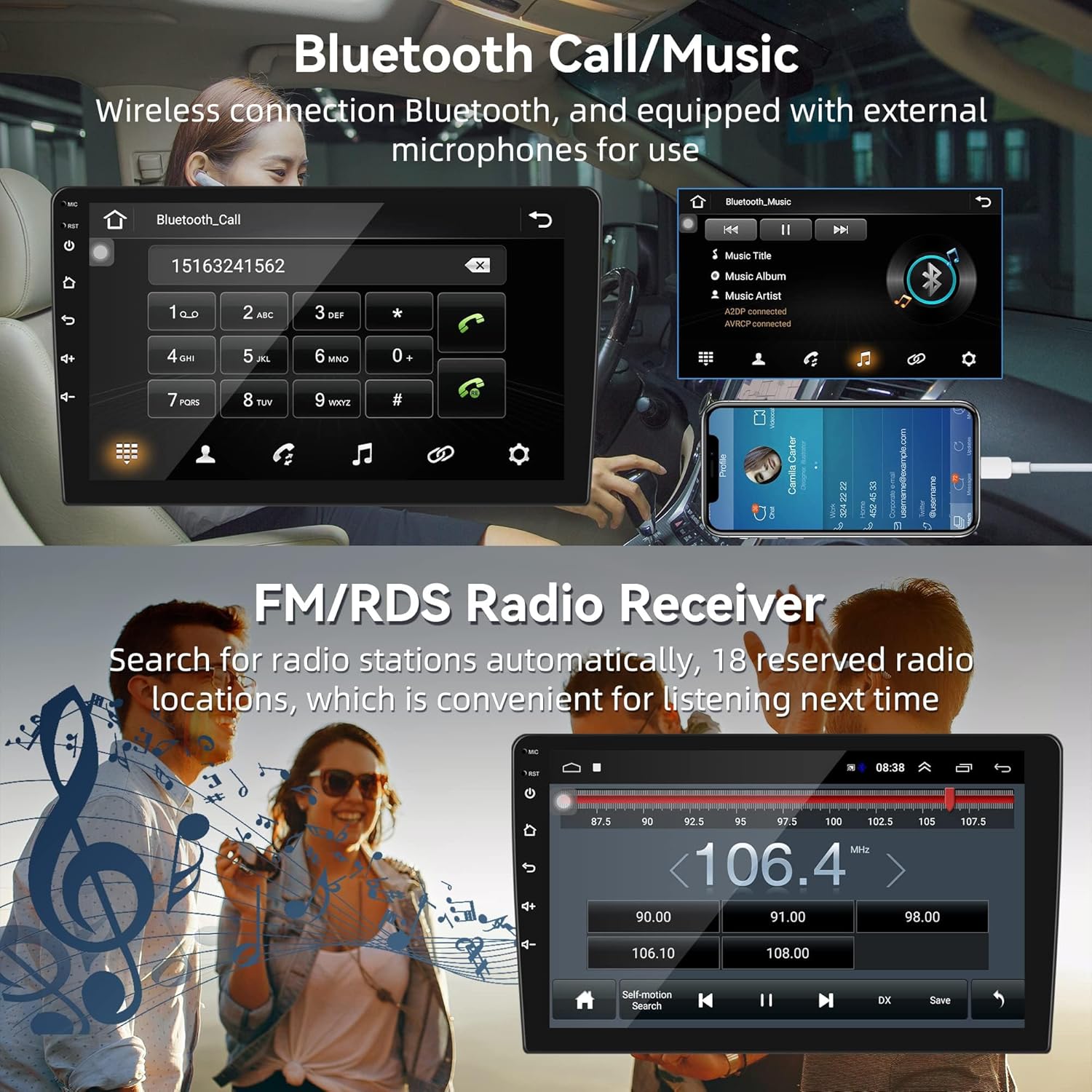 | BuiltIn Media | Android Car Stereo, External Microphone, GPS Antenna, HD Backup Camera |