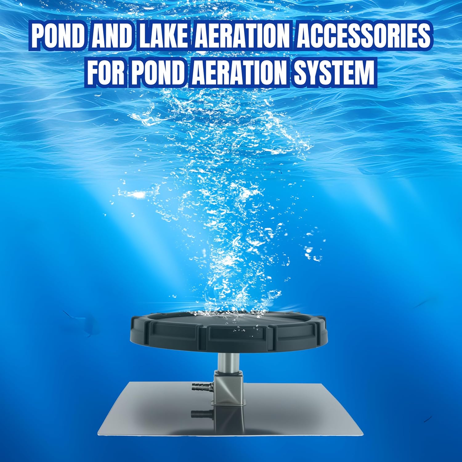Applications Residential Ponds: Keeps water clear and healthy for fish and plants. Lakes and Large Water Bodies: Improves oxygen levels . Aquaculture: Supports fish health and growth by maintaining optimal oxygen levels. Easy 5-Step Installation: 1. Attach the membrane diffuser to the stainless steel baseplate. 2. Connect the included check valve to the diffuser assembly. 3. Select the appropriate reducer adapter for your air hose size. 4. Secure all connections with the stainless steel hose clamp. 5. Place the assembled diffuser unit into the deepest part of your pond or lake