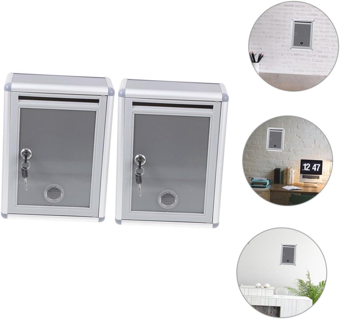 Package List 2 x Suggestion Boxes Characteristics -Material:Aluminum Alloy metal wall mailbox with lock -Size:28.00X21.00X10.00cm/11.00X8.25X3.93in wall mounted mailbox with lock -Color:Silver wall mailbox with lock -Accommodates different letter sizes with its opening: this letter box is designed to fit various letter sizes, making it convenient for users to store and organize their letters without worrying about size restrictions wall mounted mailbox. -Made of selected material, this mailbox is durable and sturdy for metal wall mailbox. -The versatile design of this letter box makes it suitable for use in various office environments, including offices, small businesses metal wall mounted mailbox. -With its simple design and practical functions, it will win your love bring you mailbox. -Ample storage space for organizing a large number of letters, this letter box provides users with enough room to organize a large number of letters metal wall mount mailbox.Goods Informationwall mailbox with lock With its opening, it can accommodate various sizes of letters.wall mounted mailbox The office suggestion box is a versatile storage for your office.wall mailbox Its sleek and minimalist design makes it suitable for any office setting.wall mounted mailbox with lock And it has a large capacity to store letters