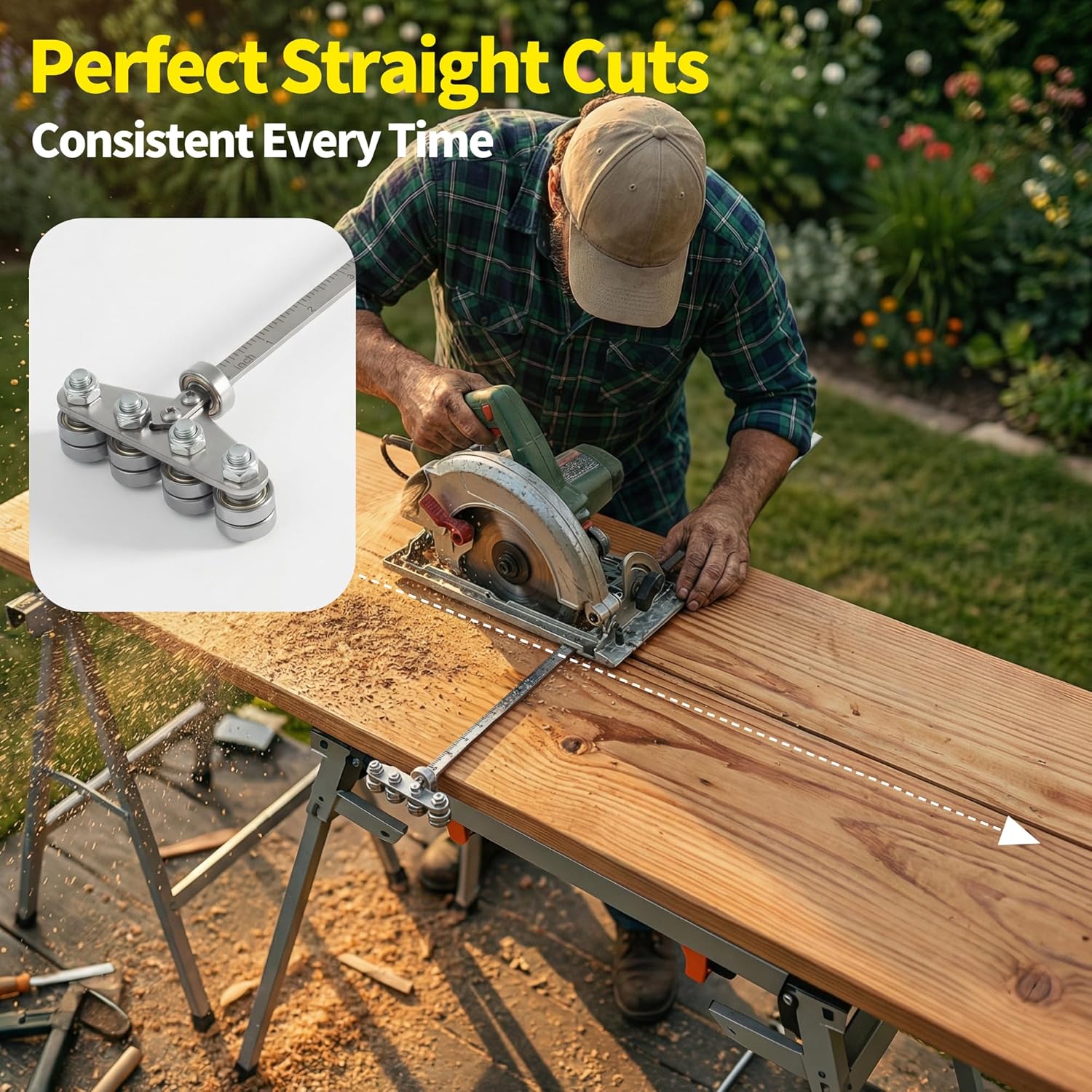 This positioning calipers for circular saw is designed to improve cutting accuracy when using a circular saw. By combining a straight guide rail with clear measurement markings, it allows users to position the saw precisely and achieve clean, straight cuts without repeated measuring or marking. The guide rail is made from 3 mm thick premium stainless steel, and its rigid construction helps maintain cutting accuracy during operation, making it suitable for both DIY users and experienced woodworkers. The 50 cm adjustable length meets common cutting requirements for boards used in furniture projects and home renovations. Equipped with 4 smooth ball bearings, the guide glides steadily along the edge of the workpiece, supporting stable movement and consistent cutting. This cutting accessory is a practical addition to any woodworking shop, helping achieve precise wood cutting for cabinets, shelving, flooring, and general woodworking projects.