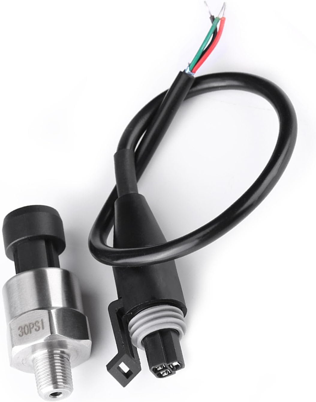 Features:It's an advance pressure transducer than traditional mechanical pressure transducer.±2%FS small output error, including nonlinear, hysteresis error and repeatability, full temperature range.Light weight and small size, convenient to install and operate.It has complete surge voltage protection function.Works for oil, fuel, diesel, gas, water, air pressure, can be used in oil tank, gas tank, diesel tank etc.Specifications:Material: Stainless steelVoltage: DC 5VPressure: 30 psi, 100 psi, 150 psi, 200 psi, 300 psi, 500 psi (Optional)Thread Type: 1/8" NPTPackage Includes:1 x Pressure Transducer