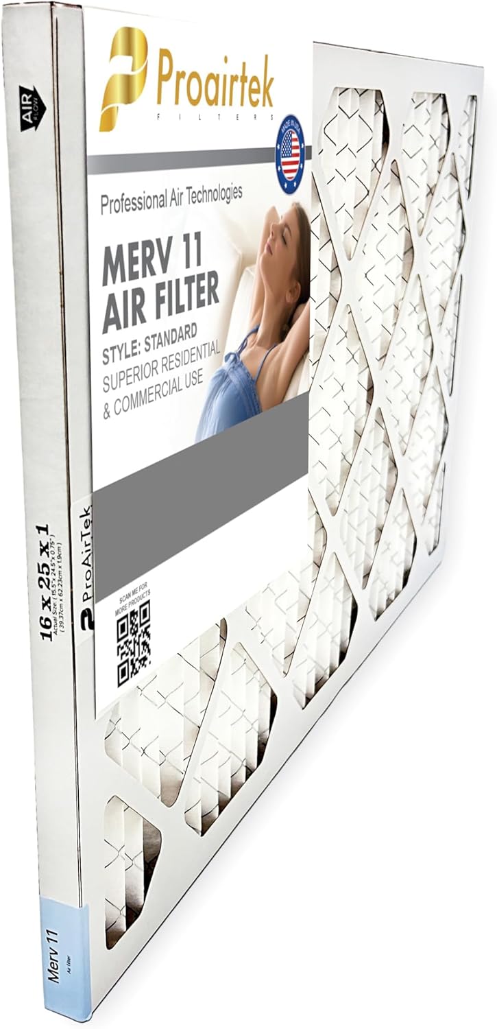 Proairtek AF16251M11SWH Model 16x25x1 Pack of 6 Air Filters, MERV 11; Ideal for Anyone Wanting Clean, Crisp Air in Their Home Key Features: - Pack of 6 Air Filters - MERV 11 - Ideal for Anyone Wanting Clean, Crisp Air in Their Home - Offers Enhanced Airflow and Efficiency - Better Capture Coverage, and Provides Consistent, High-Performance Filtration Specifications: - Item Dimensions: 16 x 25 x 1 inches