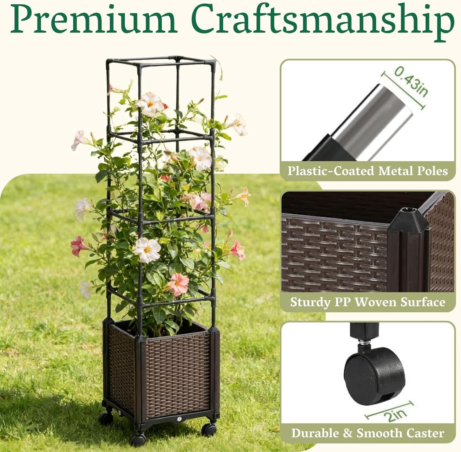 Create Your Own Unique Garden Styles With The Help of Raised Bed Garden Planters.Unlike the traditional plants growing, which grows in sole with other plants. This garden raised bed makes it possible that you can grow vine plants, flowers in indoor, balcony, conservatory etc. A unique decoration to make your room more beautiful.CONVENIENT - Those vine plants or vegetables needs sturdy rods to climb during growing, then Qaobo raised garden beds can meet such needs. Combined climbing rods with watering reservoir together, this design saves gardening lovers time and effort growing plants.ADJUSTABLE HEIGHTS - 16 pieces of connect rods provide 4 heights, with which you can grow tomatoes, roses, sweat peas, dahlia and other vine plants.PRECISE - As we all know that too much water or too less water both are bad for plants, so the water reservoir designed with holes can provide exact water for plants, keep the sole moisturized.Easy assemble, don’t need other tools. Put the connect rods in the connecting area of two side panels. Then you will finish installation.