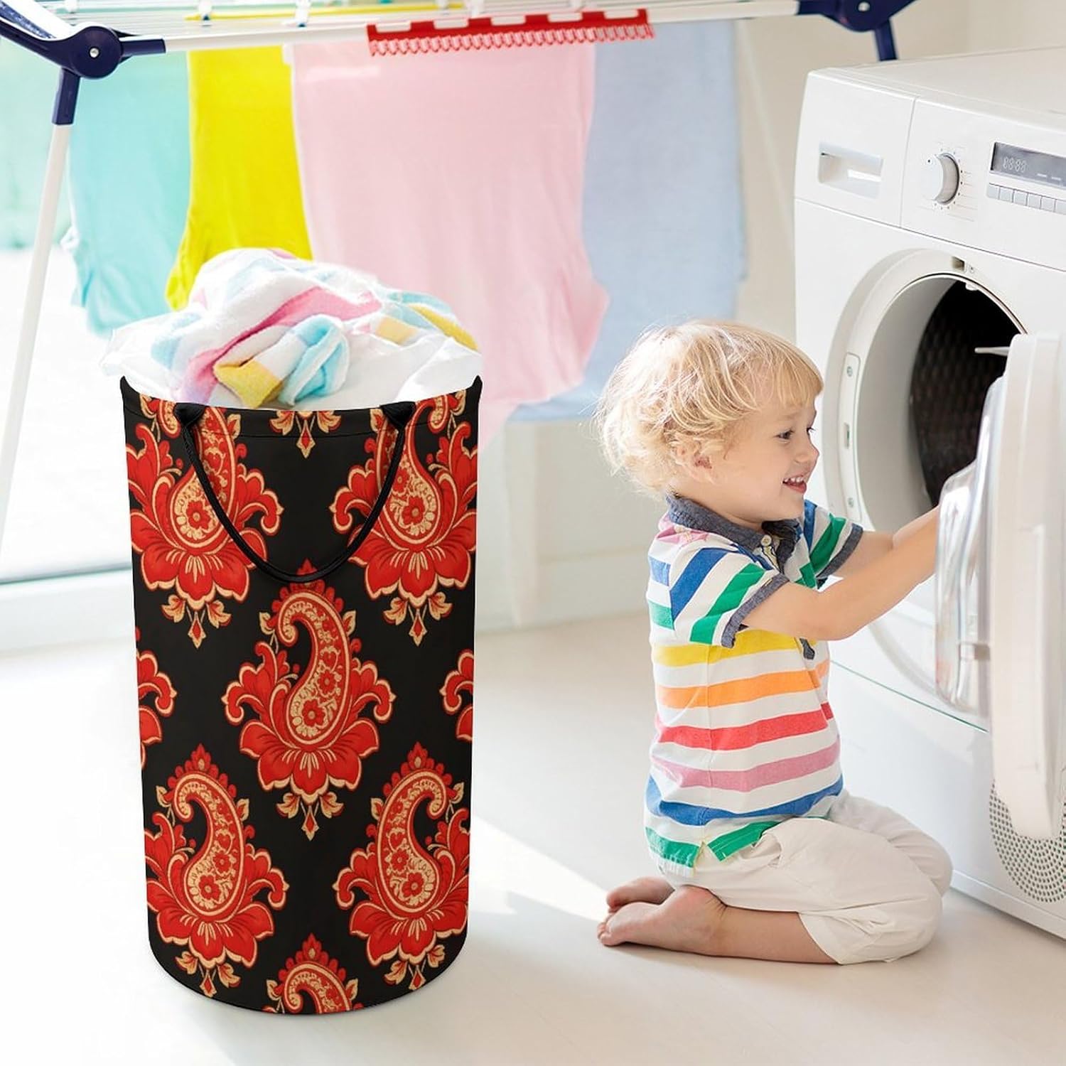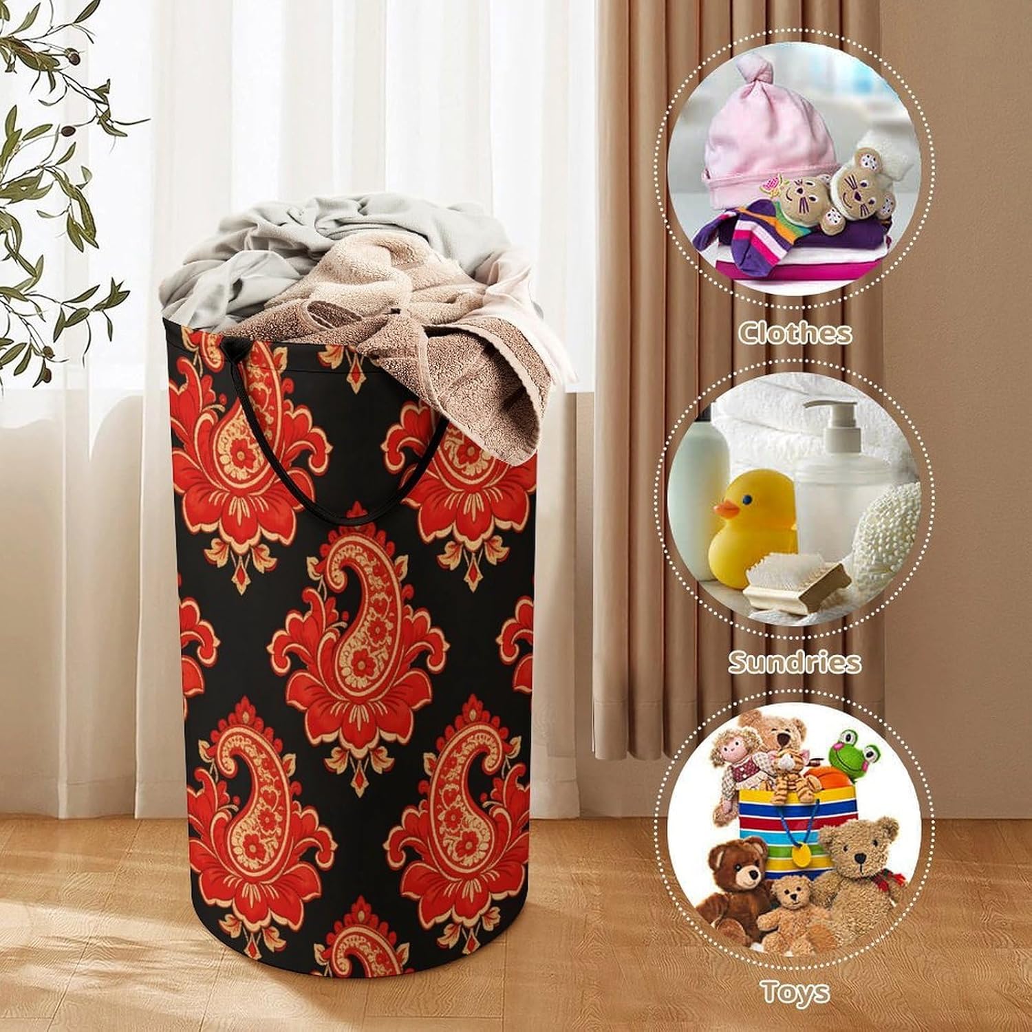 The pattern of the Red Cashew Flower hamper is printed with exquisite patterns, which makes the product more attractive.Chic design allows it to be used in the living room to hold throw blanket, pillows, and reading materials, as well as in the bathroom for towels, or as a laundry hamper.The laundry hamper adopted collapsible design, equipped with handles. It is lightweight and portable for using, storing, and moving conveniently.Red Cashew Flower Clothes hamper is suitable to store dirty clothes washing, place in the room to store toys, and other household goods, keep the house clean and tidy. Perfect laundry hamper for home, office, closet organizer, bedroom, bathroom, college dorm, etc.Gets out of your way when you need it to. This storage basket or laundry hamper is a good gift, which not only meets everyday storage needs but also carries deep care and love, a perfect way to turn thoughtfulness into warmth.