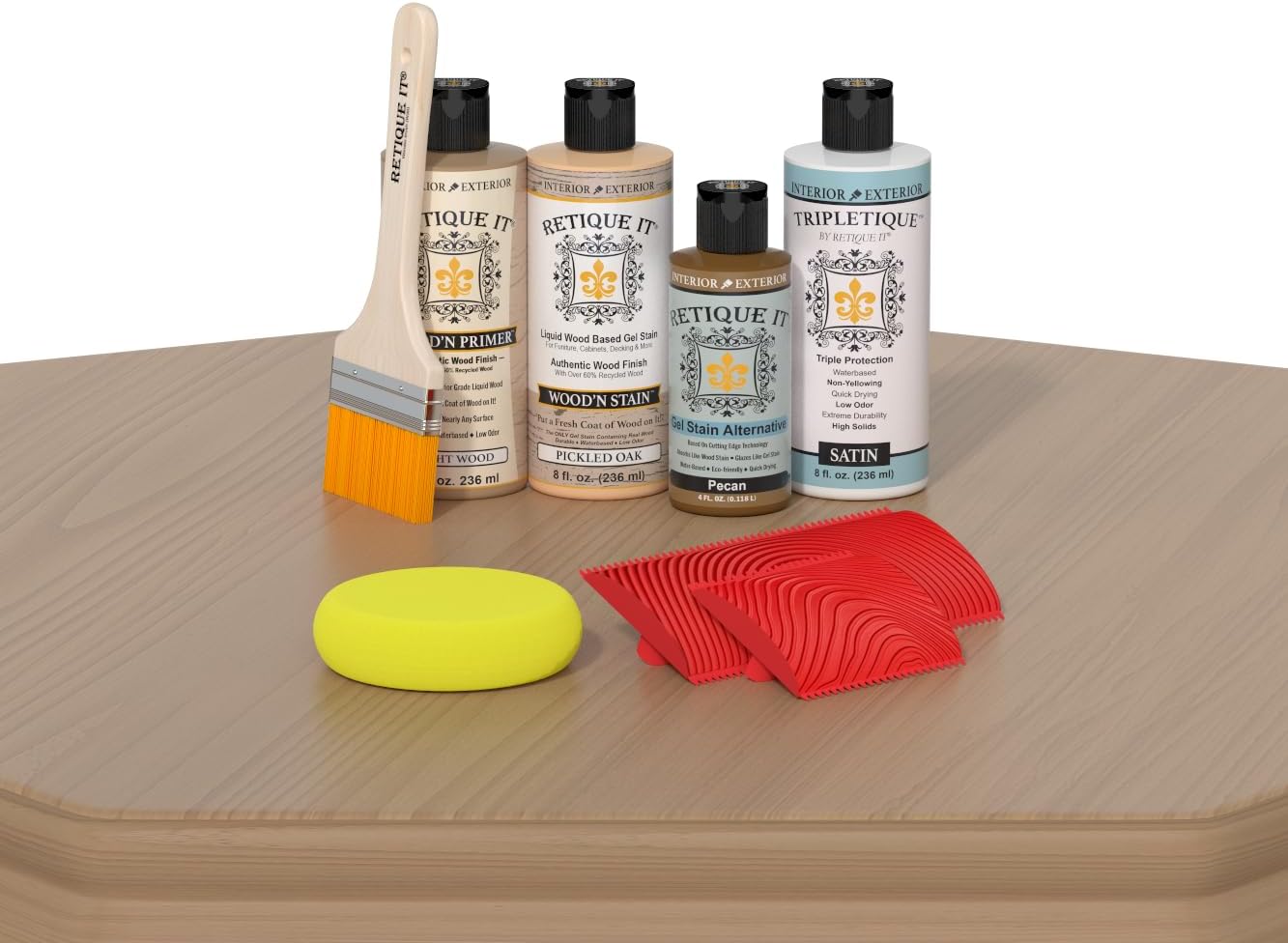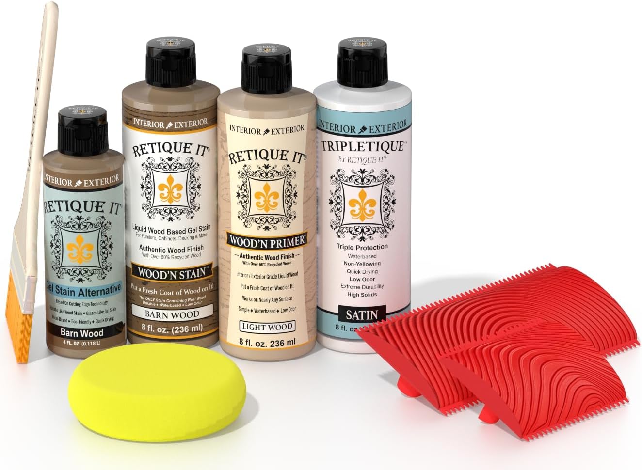 | Included Components | 2x graining tools, 3" wonder brush, 8 oz liquid wood, 8 oz tripletique, 8 oz wood stain |