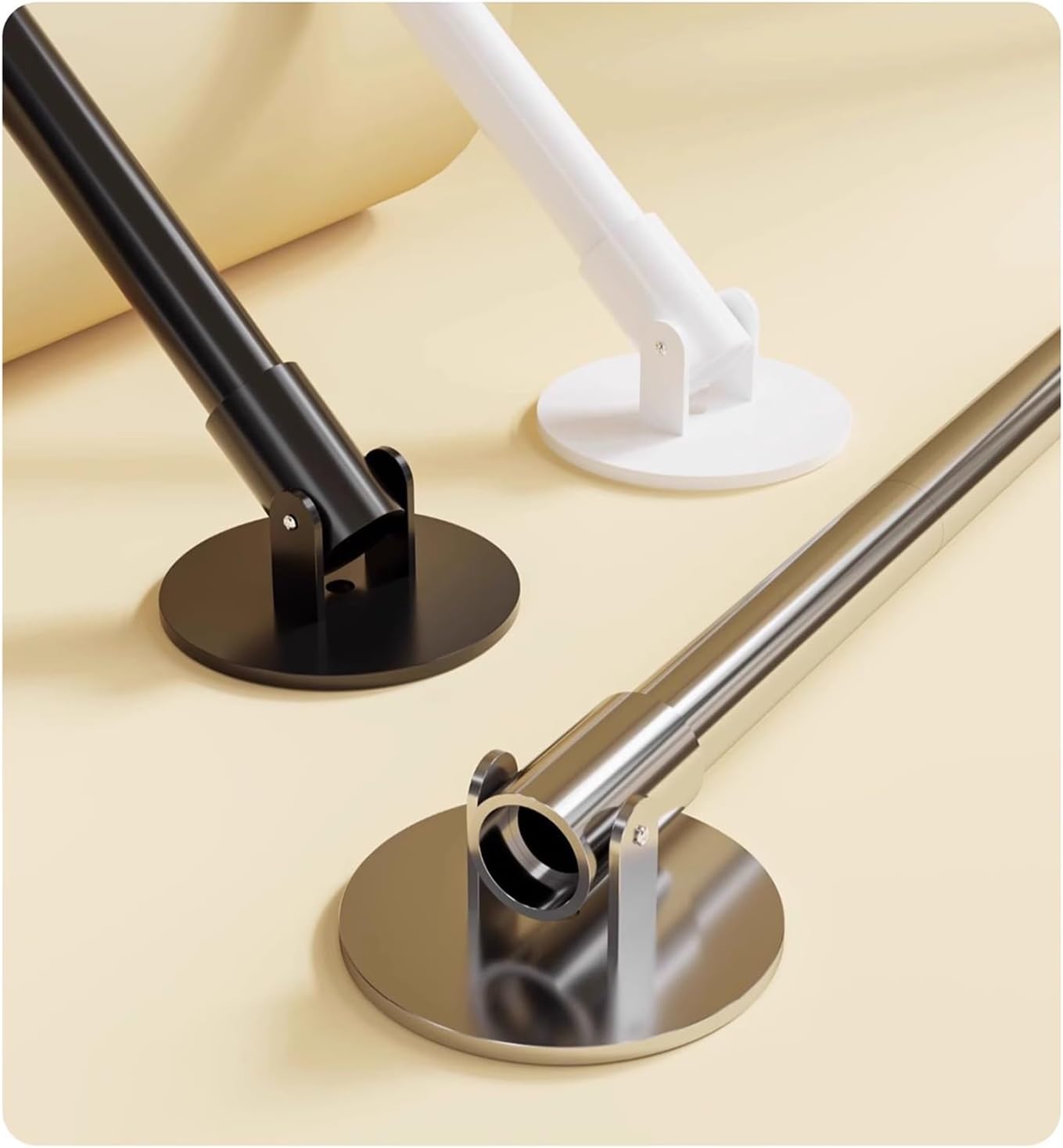 Closet Rod Top Mount Wardrobe Bars:Our versatile rotating telescopic rod is designed to easily adapt to any space, making it perfect for hanging items in irregular corners. With adjustable ends, this rod is ideal for both functional and decorative uses, providing a reliable solution for your hanging needs. Crafted from high-quality steel, our telescopic rod boasts a sleek finish in black, silver, and white, ensuring it complements any decor. With a diameter of 2.5cm (1 inch) and an impressive load capacity of up to 50kg (110lbs), it’s sturdy enough to hold wet clothes, shower curtains, and more without compromising on durability. **Key Features:** - **Universal Fit:** Effortlessly adjusts to fit various spaces, making it suitable for any room. - **Adjustable Length:** Tailors to your specific spacing requirements, ensuring a perfect fit. - **Durable Construction:** Made from thicker materials, it offers better load-bearing capabilities and is resistant to rust and deformation. - **Easy Installation:** No tools or drilling required; set up in minutes for immediate use. - **Space Efficient:** Maximizes your space with ease, allowing for a tidy and organized environment. **Multi-functional Uses:** - **Bathroom:** Use as a shower curtain rod, towel rack, or storage rod. - **Wardrobe/Storage Room:** Functions as a temporary hanging rod or tiered divider. - **Restroom/Entrance:** Ideal for hanging door curtains or decorative drapes. - **Kitchen/Balcony:** Perfect for drying dishcloths or small items. - **Any Room Corner:** Great as a support rod for decorative string lights or for hanging plants. **Important Notes:** - Slight dimension variations may occur due to manual measurements. - The color of the item may differ slightly from the images due to lighting and screen settings. Transform your home with our adjustable telescopic rod—an essential addition to every space!