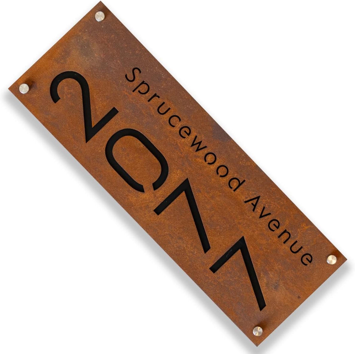 The rusty iron address plaque is coated with a sealant to prevent oxidation, and weather, prolong service life, and prevent pollution of the wall.and the matte finish is very textured. Each sign is our careful making. Hope it can be your favorite sign too.Bring you the warmth and beauty of home.✔SUITABLE FOR OUTDOOR ✔MODERN HOUSE NUMBER IS HANDMADE.✔OTHER SIZES AND PATTERNS CAN BE CUSTOMIZED.