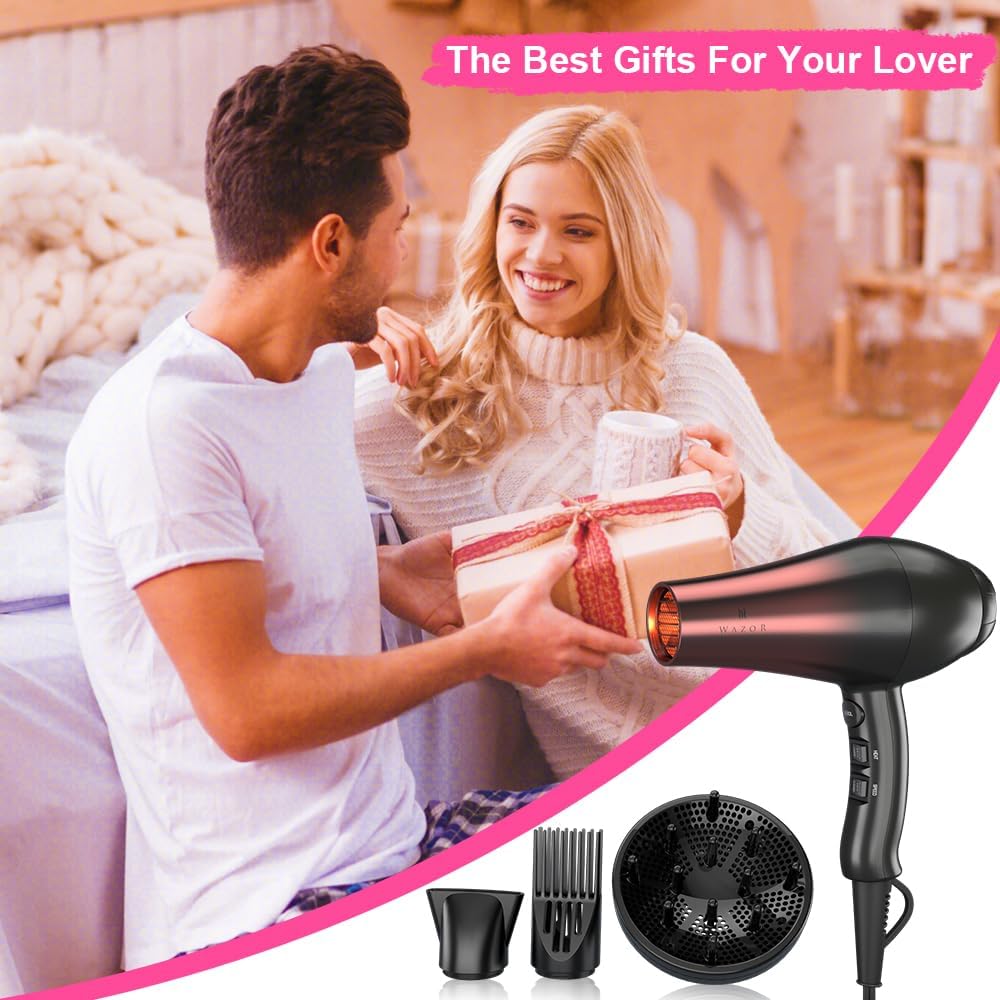 Salon Professional Hair Dryer with Ceramic Tourmaline Ionic & 1875W Powerful Blow Dryer, Far Infrared Hair Dryer Contains 3 Heat & 2 Speed&1Cool Button, 3 Attachment Like Diffuser for Hair Styling