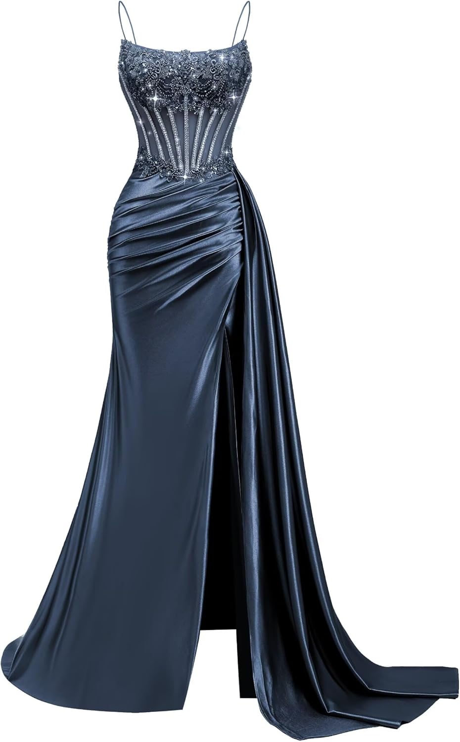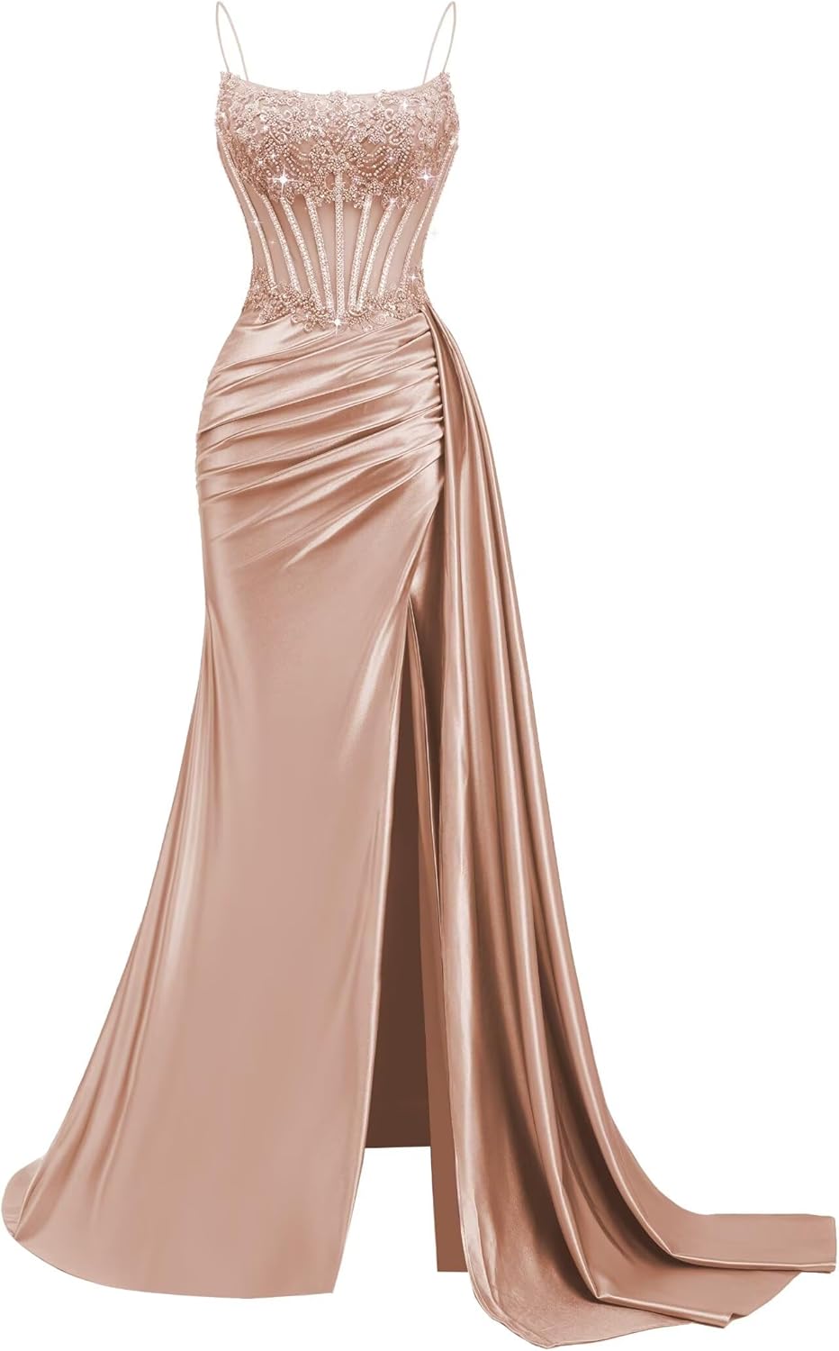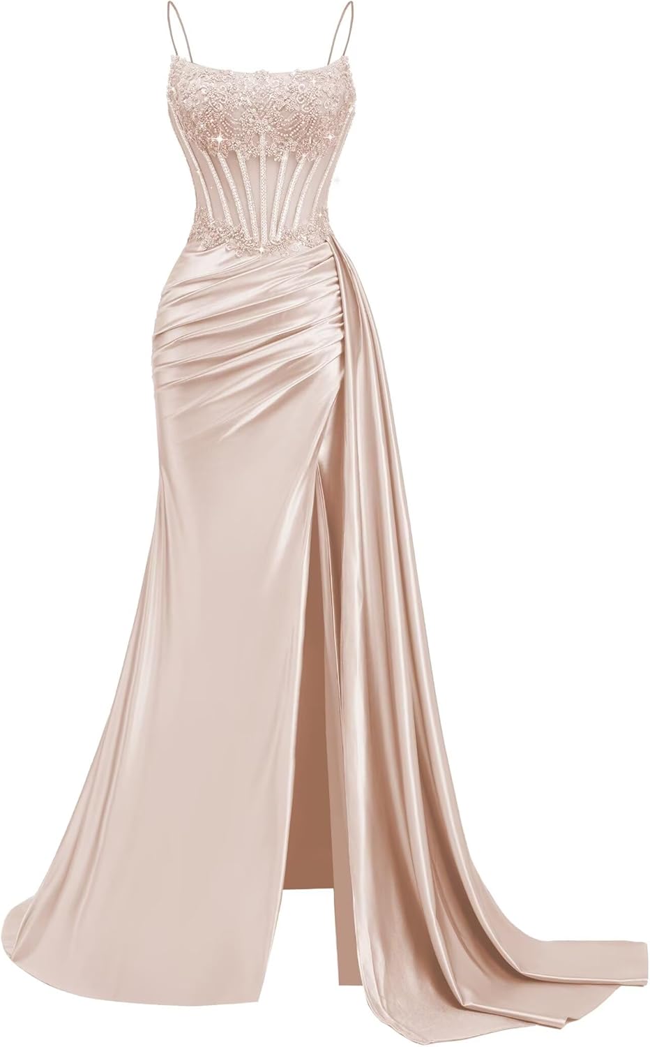 | Embellishment Feature | Beaded Mermaid Prom Dresses, Cowl Neck Satin Prom Dresses, Satin Mermaid Prom Dresses, Satin Pleated Prom Dresses, Spaghetti Straps Satin Prom Dresses |