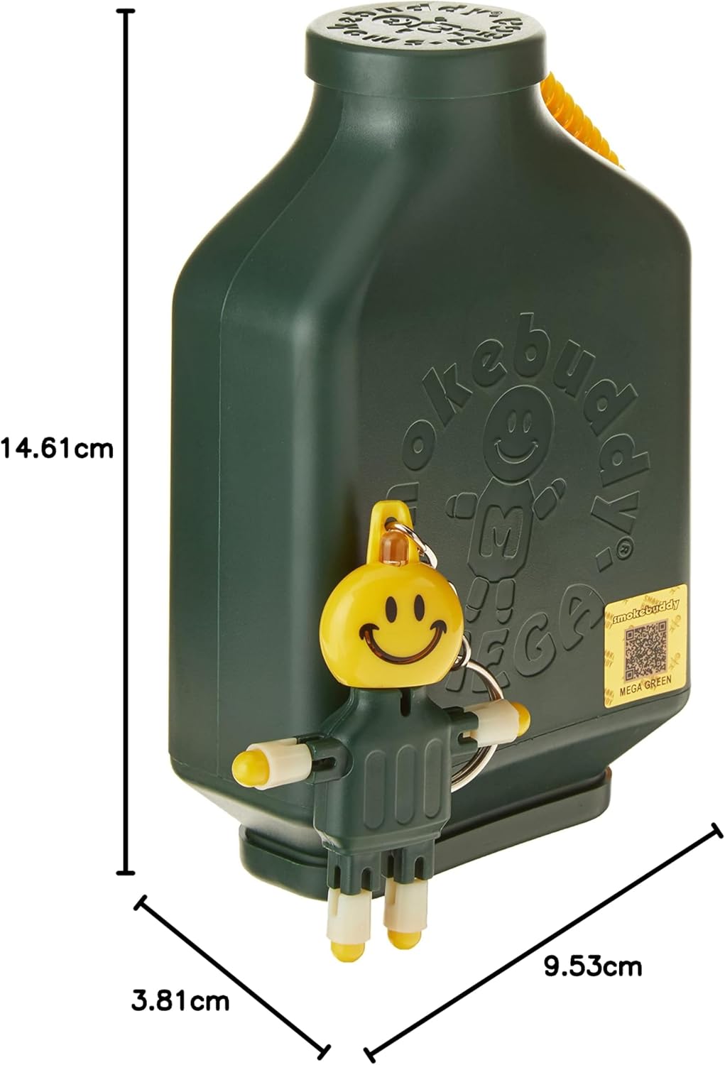 The Smokebuddy MEGA is our largest personal air filter. Designed with a filter twice as large as the Original Smokebuddy. The flat shape fits in your hand and looks great. Every Smokebuddy MEGA includes a MEGA size Mr. MegaBuddy LED keychain that will light up when you squeeze him.Smokebuddy MEGA will last the heavy users months and possibly years. The Smokebuddy MEGA is a handy, and reliable, life saving air filter. Simply exhale your smoke through your easy-to-use Smokebuddy MEGA and odorless air comes out the other end. Smoke where you want, and when you want without anyone knowing the wiser. Keep second hand smoke away from friends, family, and neighbors with your Smokebuddy MEGA.