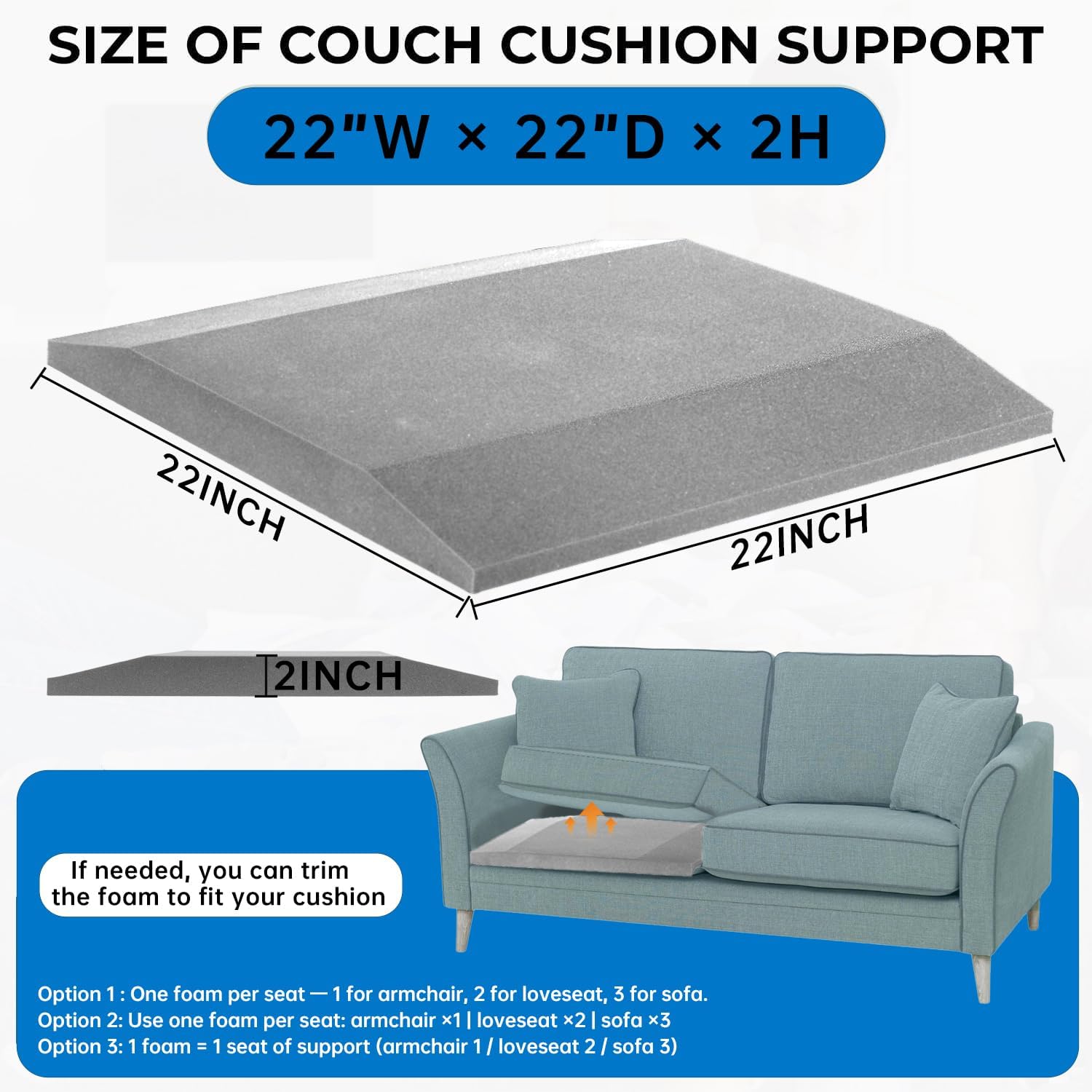 Revitalize your beloved furniture with our premium Couch Cushion Support designed to effectively address sagging cushions and restore optimal comfort to your seating. Crafted from firm, durable 44D high-density foam, our foam couch insert ensures superior support, lasting shape retention, and exceptional resilience.