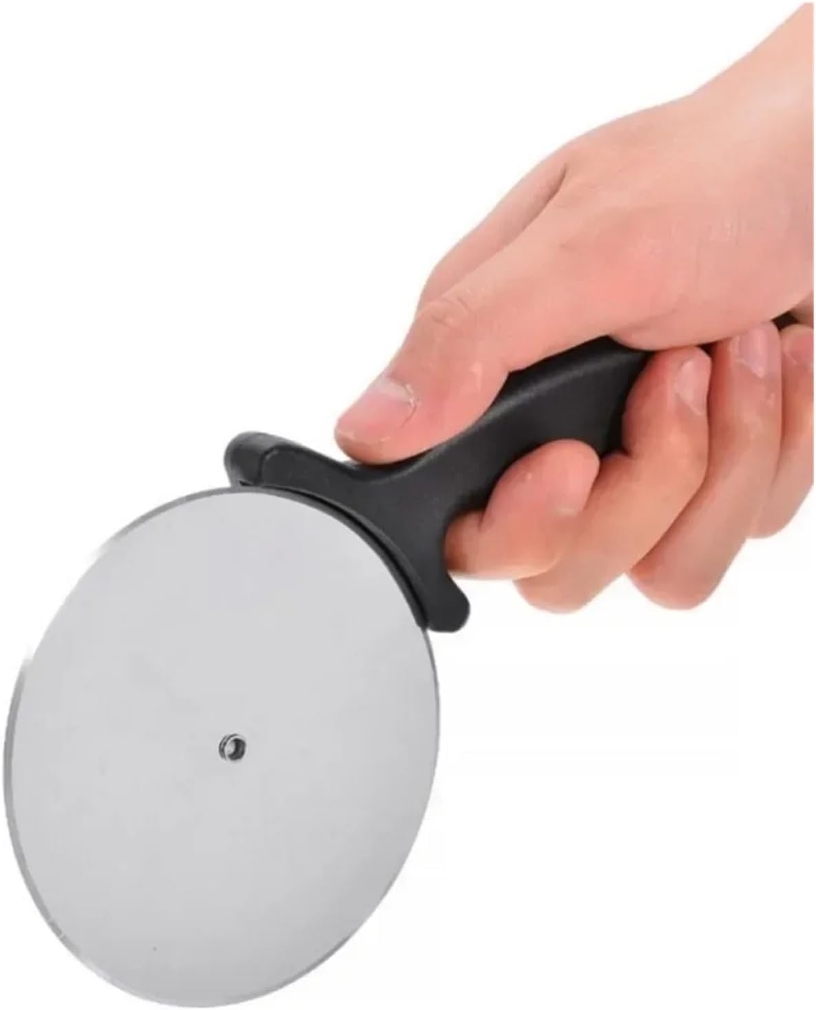 Pizza CuttersMaterial: stainless steel+PPSize: 18CM* 6.5cm, knife diameter: 5CMColor: blackPackage list:1 PC pizza cutterNotes:Feature : Eco-FriendlyMaterial : Stainless steelPizza Tools Type : Pizza Cutters & WheelsType : Pizza Tools