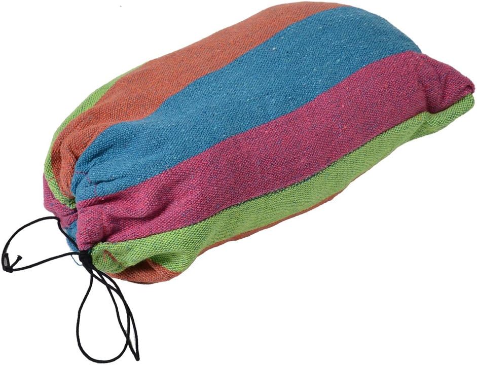 Stripe Pattern Outdoor Camping Rope Swing Bed Tree Hanging Suspended HammockLight weight and convenient to carry, great for camping, hunting, hiking, traveling, etc.Leave your job and your worries behind while you unwind and enjoy a fun and relaxing time.Make Leisure Inescapable.Our outdoor hammock make relaxation automatic and leisure all.Foldable Outdoor Hammock - for short or long-term traveling, jungle expeditions or hiking.The body cradle has deluxe weave which provides more comfort and not give your patio that sloppy appearance.With nylon on the two ends, it is easy for you to hang the hammock between two trees or other firm objects.You would not believe you ever rested elsewhere, so make sure you have a chair or two handy for as soon as the weather is right.
